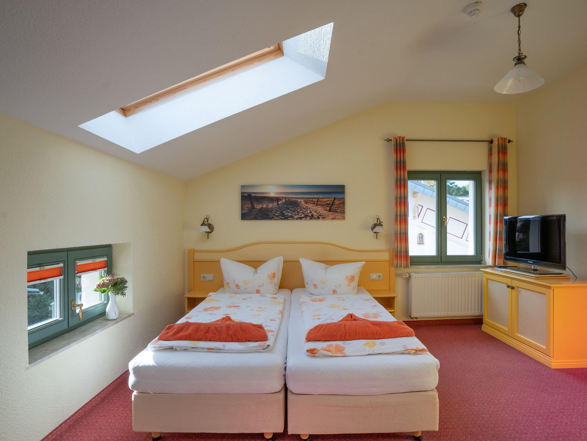 Das 31 qm große Einraumappartement im Dachgeschoss verfügt über ein Doppelbett, Sitzgelegenheit, TV und Radio sowie eine Küchenzeile mit Geschirrspüler,