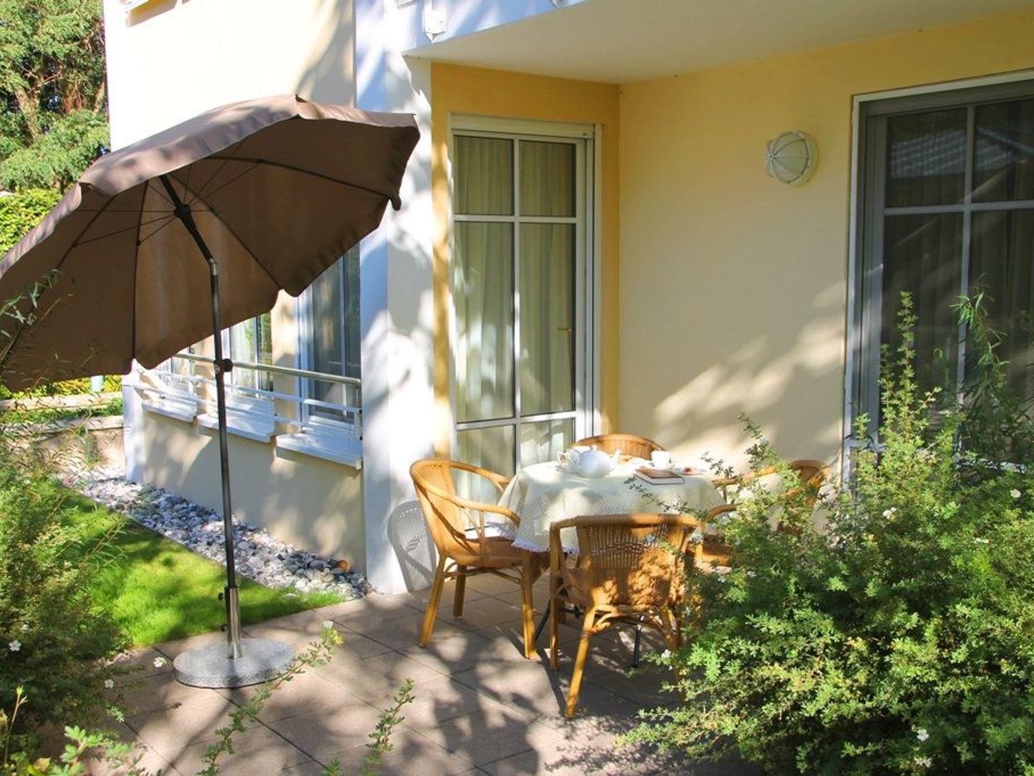 Im Appartement Nr. 14 der Villa Charlotte können bis zu 4 Personen ebenerdig auf 54 Quadratmetern einen erholsamen Urlaub verbringen. Vom Wohnbereich erreichen Sie die Privatterrasse mit südwestlicher Ausrichtung. Genießen Sie Ihre Urlaubstage, voller Harmonie im Grünen und lassen einen erlebnisreichen Urlaubstag bei einem Glas Wein mit Blick in den gegenüberliegenden Goethepark ausklingen. Für die Zubereitung Ihrer Lieblingsspeisen bietet die in den Wohnraum integrierte hochwertige Küchenzeile dank Backofen, Kühlschrank mit Gefrierfach, Geschirrspüler, Mikrowelle, Wasserkocher, Toaster, Kaffeemaschine beste Voraussetzungen. An dem Esstisch können bis zu vier Personen den kulinarischen Freuden frönen.[nbsp] Im großzügigem Schlafzimmer erwartet Sie ein bequemes Doppelbett (180 x 200cm / zwei getrennte Matratzen).