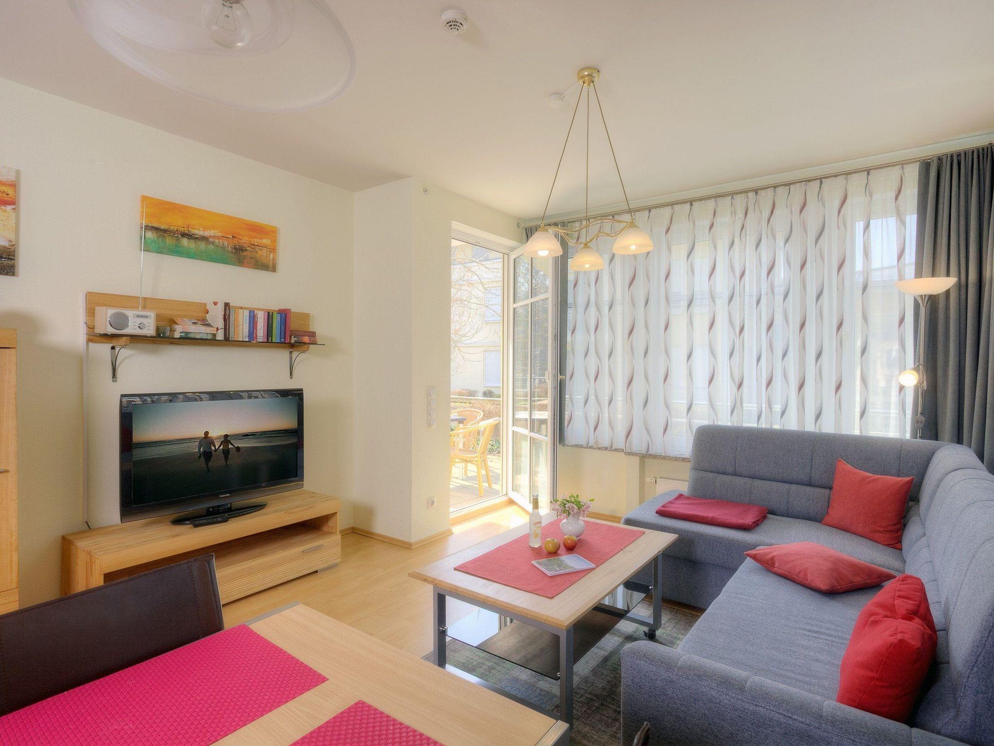 Damit Sie Ihre wohlverdiente Urlaubszeit bereits am Anreisetag in vollen Zügen genießen können, haben wir das Bett für Sie und das für Ihre lieben Mitreisenden bereits bezogen und ein Duschtuch sowie ein kleines Handtuch bereitgelegt. Vom Schlafzimmer haben Sie einen zweiten Zugang zu der Terrasse. Die Schlafcouch im Wohnbereich lässt sich im Handumdrehen für die dritte und vierte Person in ein weiteres Schlafgemach umwandeln. Das elegante Badezimmer mit Badewanne, WC, Haartrockner und einem Handtuchheizkörper überzeugt durch seine hochwertige Ausstattung. Für kuschelig warme Füße sorgt die Fußbodenheizung. Wohn- und Schlafraum verfügen über elektrische Jalousien.