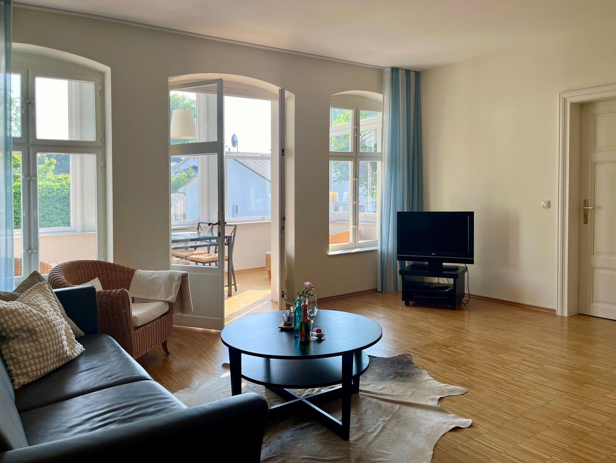 Die ca. 80 qm große Ferienwohnung ist strandnah gelegen und befindet sich im denkmalgeschützten Vorderhaus der ALTEN BUCHDRUCKEREI. Der Grundriss mit zwei Schlafzimmern ist ideal für Familienurlaub.
