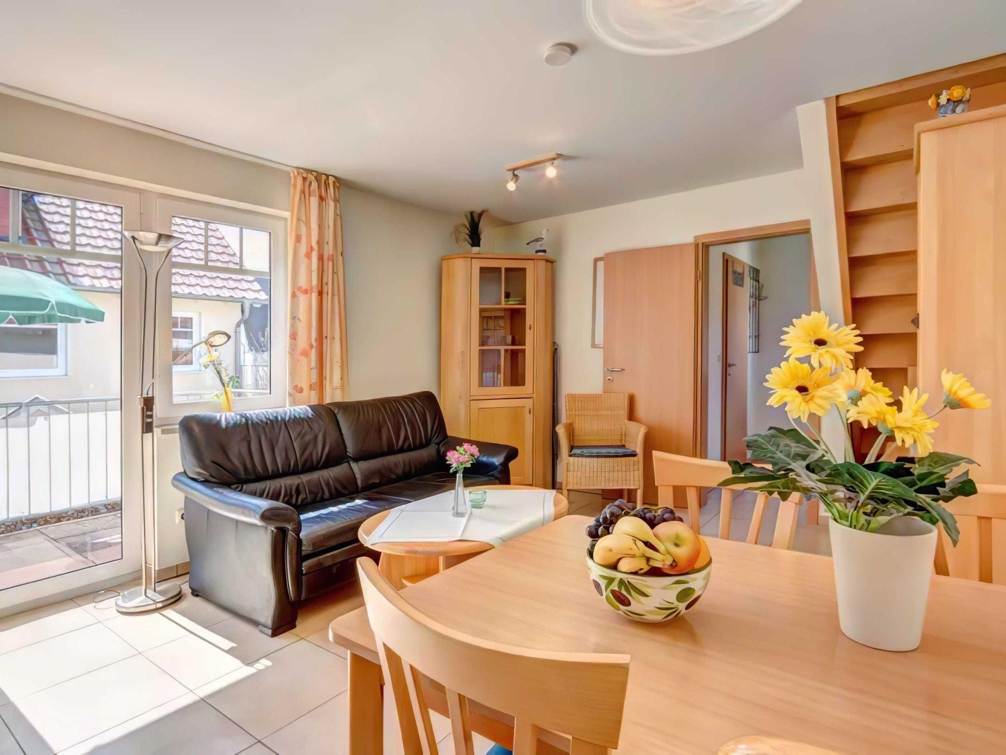 Die Ferienwohnung Villa zur Sonneninsel, App. 08 bietet auf 48 m² Platz für maximal drei Personen. Sie befindet sich in der Villa zur Sonneninsel und verfügt über zwei Schlafzimmer und ein Badezimmer. Zur Ausstattung gehören ein Flachbildfernseher, WLAN/Internet, eine offene Wohnküche, ein Balkon und eine Musikanlage. Außerdem sind ein Parkplatz und eine Fahrradabstellmöglichkeit vorhanden.