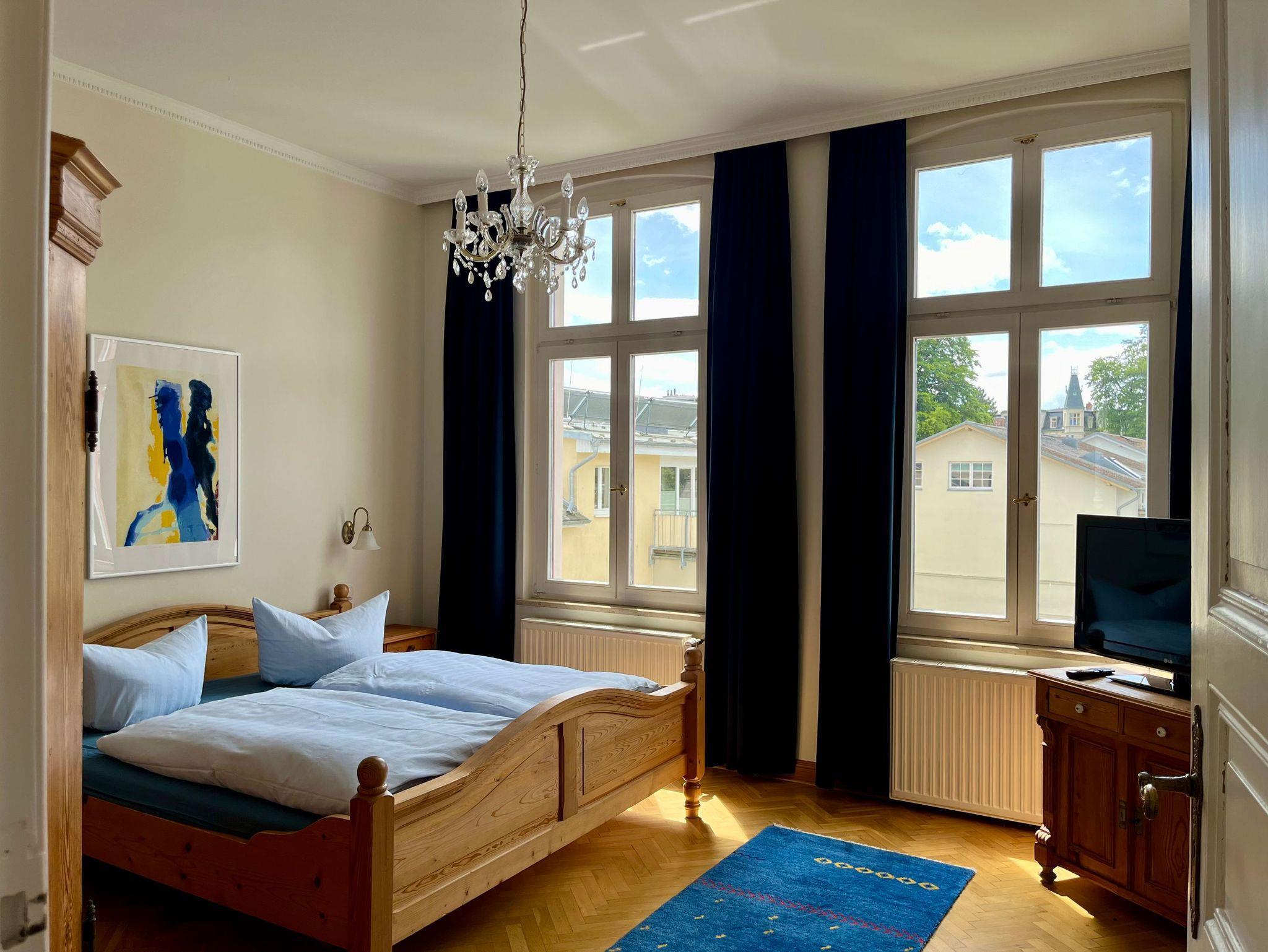80 qm große Ferienwohnung mit historischem Verandenvorbau und zwei Badezimmern. W-LAN-Zugang und Erstausstattung mit Bettwäsche & Handtüchern inclusive. Gegen Gebühr können Kinderbett und Hochstuhl geliehen werden. Auf Wunsch bieten wir eine Zwischenreinigung der Wohnung gg. Gebühr an. Sollten während Ihres Aufenthaltes Fragen oder Probleme bestehen, so ist ein Ansprechpartner vor Ort. Ein Pkw-Stellplatz (7 Euro/Nacht) kann in der Nähe der Villa Kramme angemietet werden. Nach vorheriger Rücksprache mit dem Vermieter ist das Mitbringen eines Hundes möglich. Hierfür berechnen wir einen Aufpreis von 10 Euro/Nacht.
