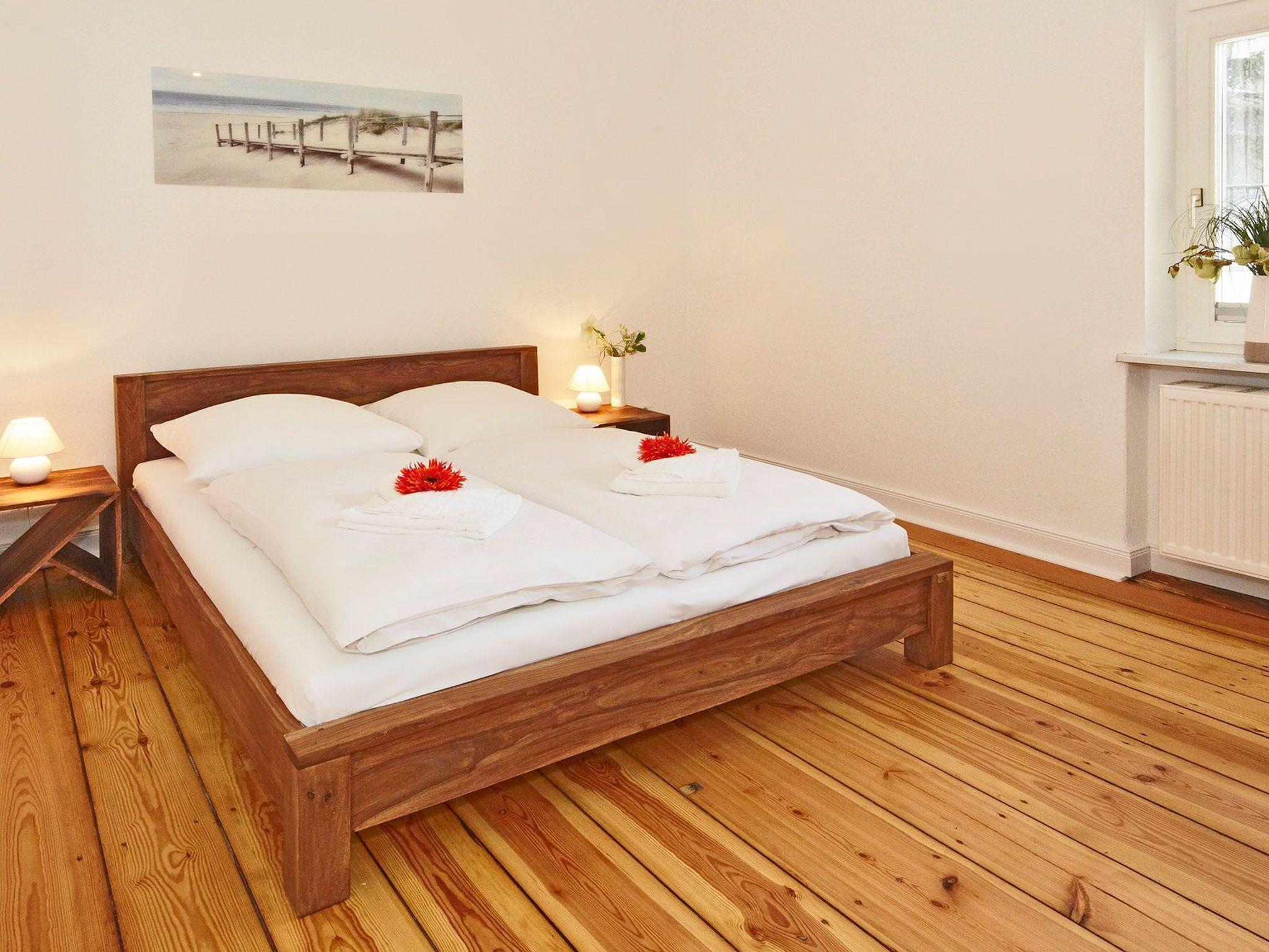 In dem großzügigen Schlafzimmer mit einem bequemen Doppelbett (160 x 200cm / durchgehende Matratze) können Sie sich zu den geruhsamen Stunden während Ihrer Urlaubszeit zurückziehen ? starten Sie entspannt und erholt in den nächsten Tag! Neben einem Kleiderschrank - ist ausreichend Platz vorhanden, um ein Babybettchen für einen kleinen Gast im Alter bis zu zwei Jahren aufzustellen.