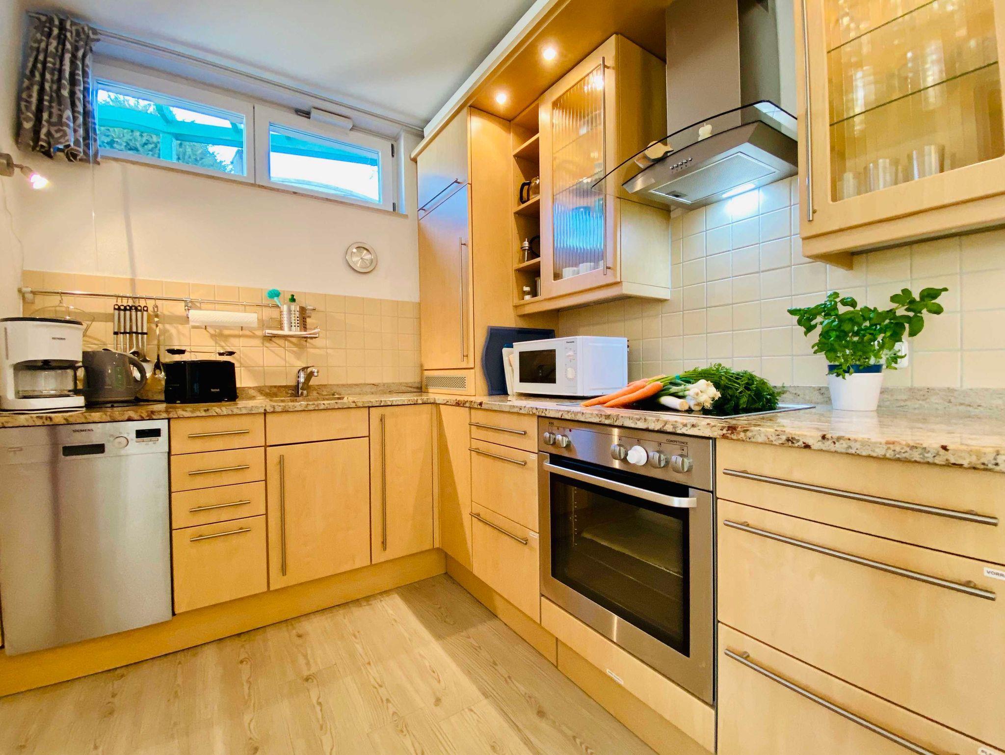 im Erdgeschoss: Gäste-WC, Wohn-Essbereich mit Küche (Geschirrspüler, Mikrowelle, Backofen), 2 TV, Internet, Musikanlage, Terrasse mit Möbeln und der Stellplatz am Haus
