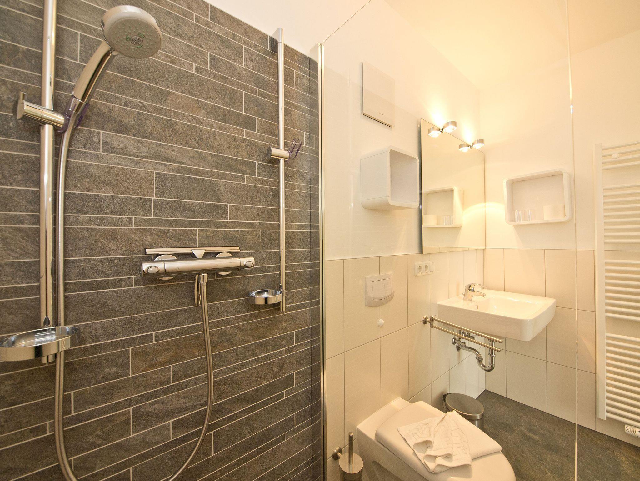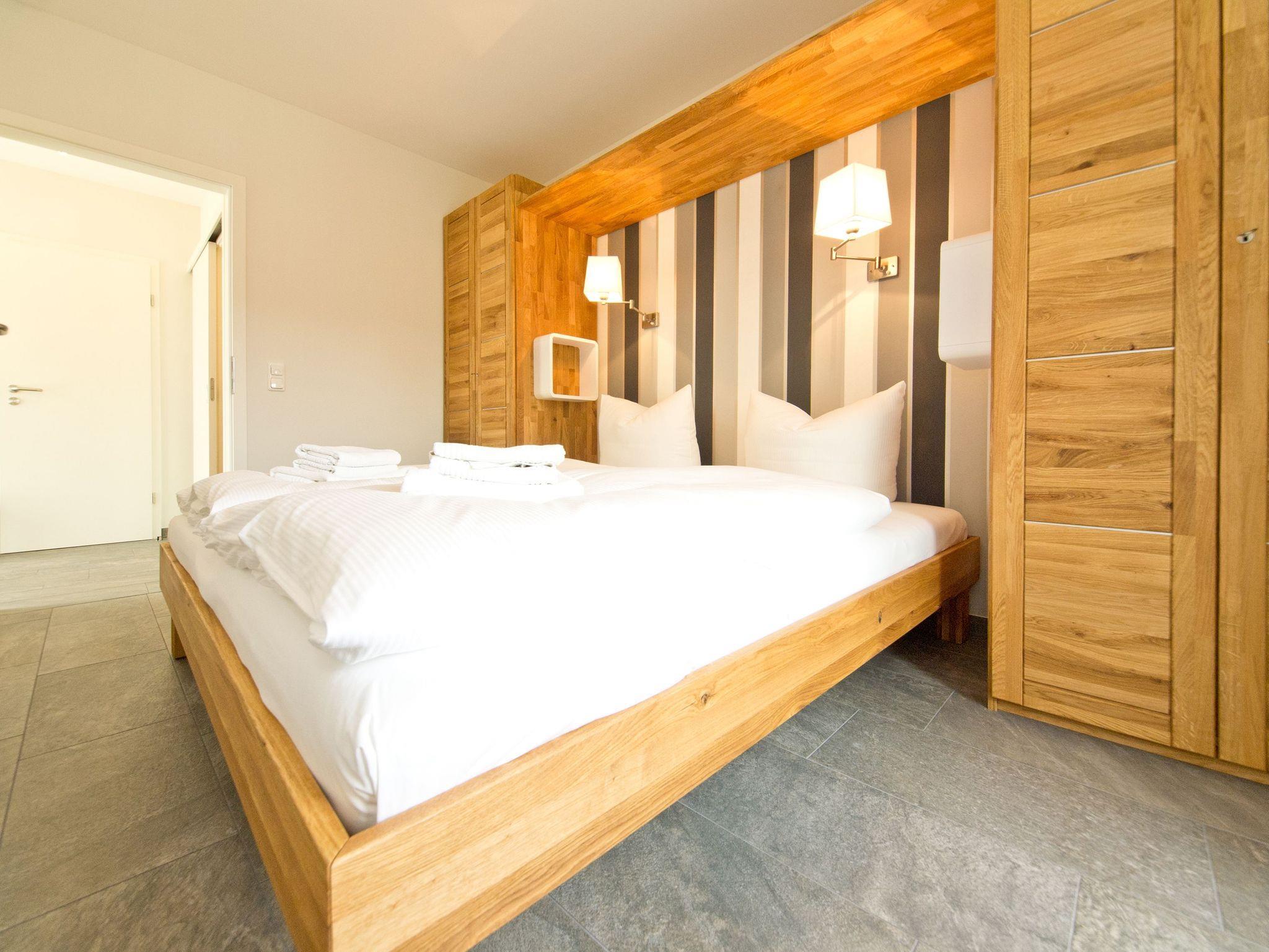 Die große Südterrasse lädt förmlich dazu ein, es sich auf ihr bequem zu machen, ausgiebig in der Sonne zu baden oder gemütlichen zusammen zu sitzen. Doch nicht nur hier fühlt sich die Sonne sprichwörtlich pudelwohl. Das Appartement 1 im Erdgeschoss des Domizils Am Hang ist in allen seinen Räumen lichtdurchflutet und hell und ausgesprochen komfortabel, um darin eine entspannte Auszeit zu verbringen. Ein großes und stilvoll eingerichtetes Wohn- und Esszimmer ist das Zentrum dieses Urlaubsdomizils. Von der bequemen Sofa- und Sessellandschaft aus können Sie das Flammenspiel im urigen Kaminofen ebenso genießen wie das Home-Entertainment des 55 Zoll Smart-TVs. Am schönen Essplatz schmecken die Mahlzeiten vom Frühstück bis zum Mitternachtssnack allemal lecker ? zumal die offene Küche alle nötigen und dazu hochwertigen Geräte und schönes Geschirr zum Kochen bereit hält. Auf den 51 Quadratmetern gibt es zwei Schlafzimmer, die jeweils mit einem großen Doppelbett ausgestattet sind, so dass bis zu vier Personen sowie ein Kleinkind (im Kinderreisebett) hier wunderbar gemeinsam Urlauben können. Geräumige Schränke bieten viel Platz zur Ablage. Beide Schlafzimmer haben Zugang zu einem Balkon in Hanglage, auf dem Sie schon morgens Sonne tanken können. Flat-TVs gehören ebenfalls zur Ausstattung der Räume. Das Badezimmer verfügt über eine schöne, ebenerdige Dusche, einen Waschtisch und ein WC. Zu der Wohnung gehört außerdem ein Gäste-WC. Für Ihren Komfort sind die Betten bei der Anreise bezogen und Handtücher liegen bereit. Ihr Auto können Sie auf dem für Sie reservierten Stellplatz (3 m breit) in der Tiefgarage abstellen.