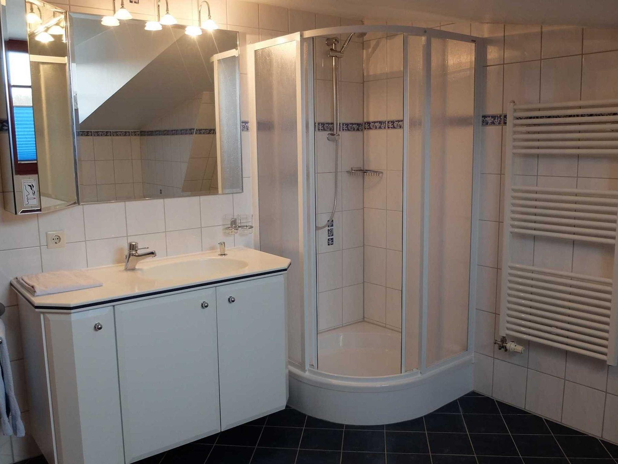 Die moderne großzügige 2 Raum Ferienwohnung befindet sich im 2. OG. (75 m²). Sie verfügt über ein separates Schlafzimmer mit Doppelbett und einem separaten Wohnzimmer. Im Wohnzimmer befindet sich eine Schlafcouch, welche für ein Kind bis 16 Jahren gut geeignet ist. Zur weiteren Ausstattung gehört eine komplette Küchenzeile (mit Geschirrspüler, Cerankochfeldherd, Backofen und Mikrowelle), Sat-TV und Radio. Das Bad ist mit einer Dusche und WC ausgestattet. Erstausstattung Bettwäsche und Handtücher sind inklusive.