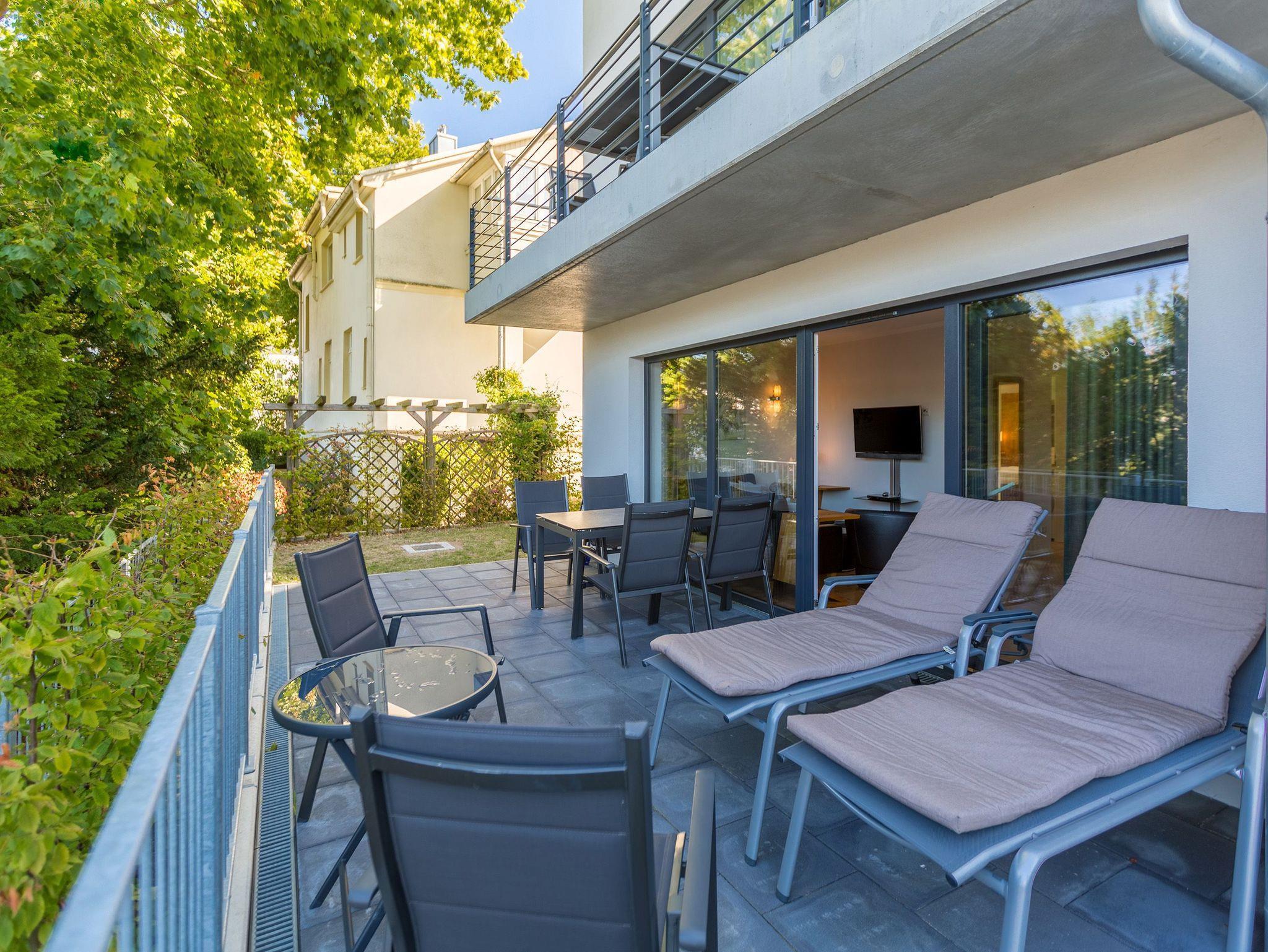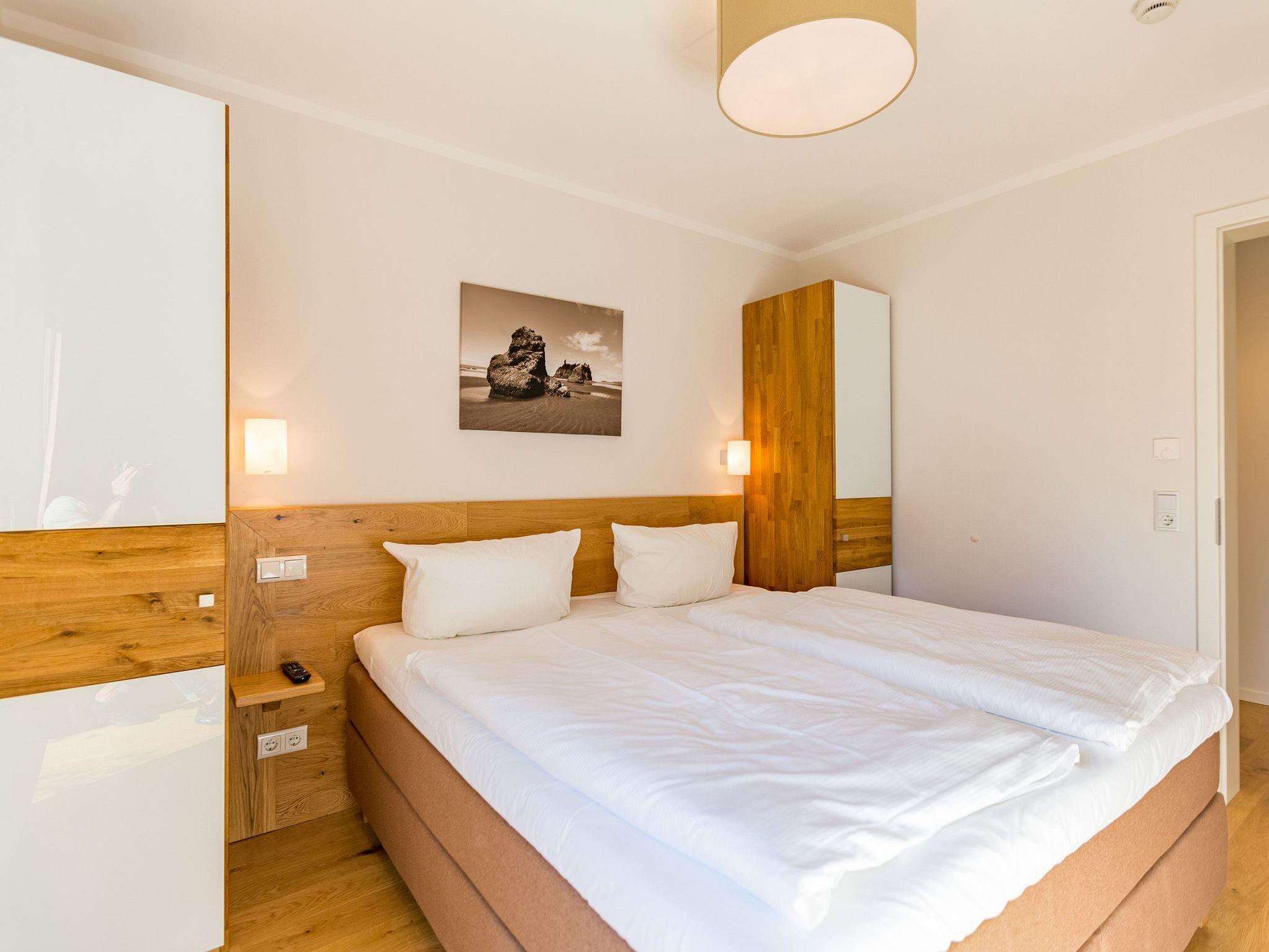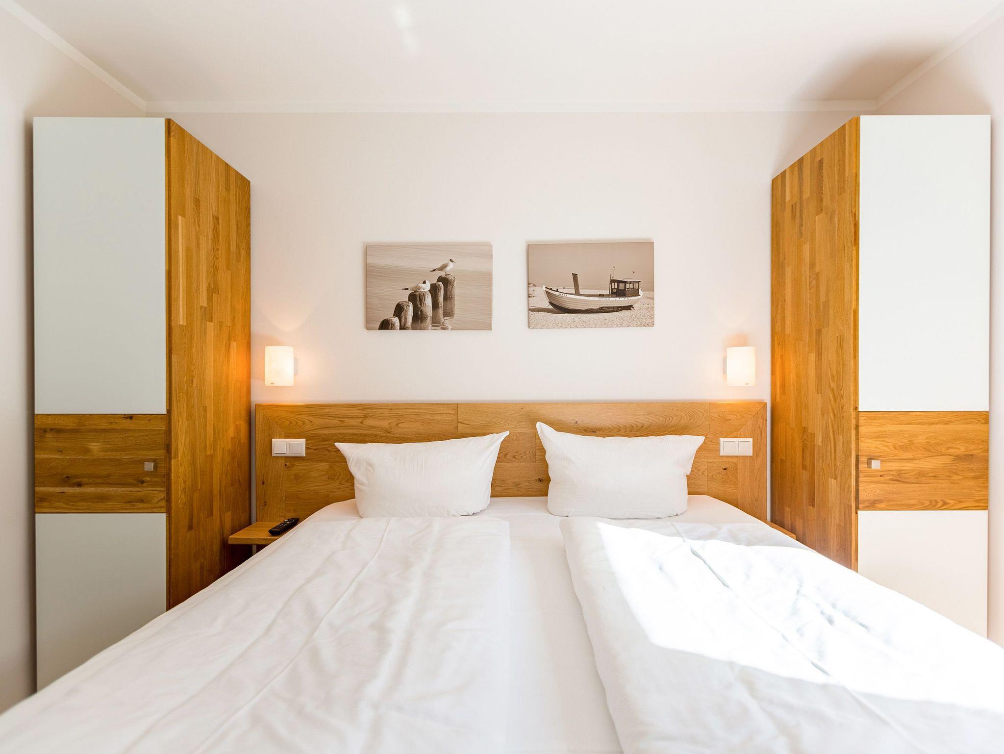 Wenn der Himmel sich im Sommer beim Untergang der Sonne in schönsten Rot- und Orange-Tönen färbt, dann können Sie auf der Terrasse Ihres Ferienparadieses sitzend diesem grandiosen Schauspiel bei einem feinen, gekühlten Getränk zuschauen. Die Wohnung 2 im Erdgeschoss des Quartiers am Fischerstrand entführt Sie auf ihren 75 großzügigen Quadratmetern in eine Welt aus warmen Farben und wunderschönen und modernen Echtholzmöbeln. Das 3-Zimmer-Appartement für vier Personen strahlt in allen seinen Räumen Eleganz aus. Zum offenen Wohnbereich gehört eine Küchenzeile mit hochwertigen Geräten wie Mikrowelle, Cerankochfeld, Backofen, Kühlschrank, Gefrierschrank, Spülmaschine und diversen Kleingeräten. Schönes Geschirr sorgt dafür, dass das Auge am schönen, großen Echtholztisch mitisst. Genießen Sie die wohlige Wärme des Kamins und entspannen Sie auf der riesigen und bequemen Sofalandschaft vor dem Flat-TV oder beim Blick ins Grüne durch die bodentiefen Panoramafenster. Zwei komfortable Boxspringdoppelbetten (beide 1,80 m x 2,00m) schenken Ihnen einen erholsamen Schlaf. In den Schränken gibt es viel Ablagefläche und in einem Schlafzimmer auch einen Safe. Die Wohnung 2 wartet gleich mit zwei Bädern auf. Beide verfügen über Dusche, WC und Waschtisch. Im Master-Bad steht eine hochwertige Miele-Waschmaschine. Zudem hat dieses noch ein kleines Highlight für Sie: Eine finnische Sauna. Für einen sorgenfreien Urlaub liegen Handtücher bereit und die Betten sind bezogen. Das WLAN ist kostenfrei nutzbar. Außerdem gehört ein Außenstellplatz zu der Wohnung. Für Ihre Fahrräder steht neben der Wohnung hinter dem dazugehörigen Parkplatz ein Fahrradständer ( für 4 Räder) zur Verfügung. **Bitte beachten Sie, dass der Kamin aufgrund eines Defektes aktuell auf unbestimmte Zeit nicht nutzbar ist. Stand: 15.12.2025**