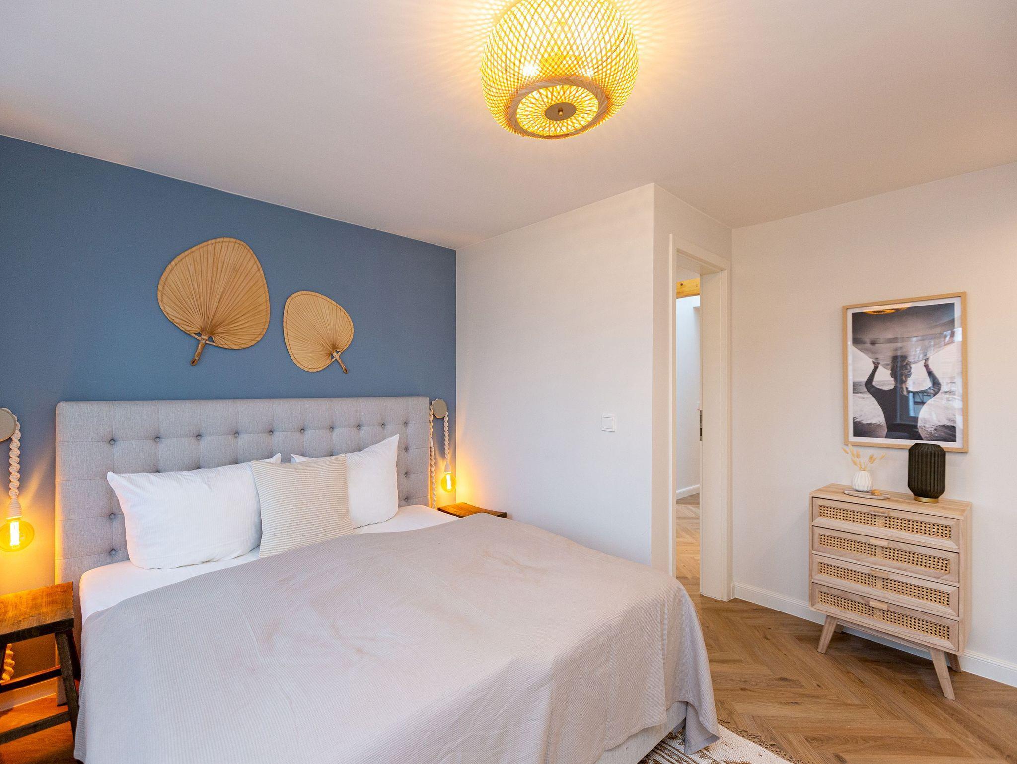 Unter dem Dach dieser wunderschönen Bädervilla mitten im Herzen von Heringsdorf wird Urlaub zu einem unvergesslich schönen und exklusiven Erlebnis. Viel Platz und Wohnkomfort der Extra-Klasse erwartet Sie auf den 110 Quadratmetern luftig leichter Urlaubsfreiheit. Alte Balken, ein Kamin, der wie ein Kachelofen eine kuschelige Atmosphäre zaubert, stylische Möbel, ein harmonisches Lichtkonzept ? all das sorgt für bis zu fünf Personen und ein Kleinkind (im Kinderreisebett) für eine entspannte Auszeit am Meer. Eine urig bequeme Sofa-Sitzgruppe lädt zum Relaxen und Faulenzen ein. Der große Flat-TV fungiert als Highend-Entertainer mit echtem Kino-Sound. Eine schöner, großzügiger Essplatz in einem Erker ist für lange Plauderabende oder ausgiebige Frühstücke, Brunches oder Abendessen ideal geeignet. Der Ausblick vom sonnenüberfluteten Südwest-Balkon auf die mondänen Villen der Umgebung versetzt in eine glanzvolle Zeit, in der die Berliner High Society in diesen Häusern gastierend die Sommerfrische an der Ostsee genoss. So wie Sie es heute tun. Die Küche ist zum Wohn-Esszimmer hin offen und mit allen nötigen Geräten ausgestattet. Hochwertig und edel ist auch das Geschirr in den Schränken. Für viel Vergnügen und erholsame Träume sorgen gleich drei Schlafzimmer. Machen Sie es sich in einem der drei Doppelbetten (1,80 m x 2,00 m; 1,60 m x 2,00 m sowie 1,40 m x 2,00 m) bequem. Die Erholung kommt dann von ganz allein. Denn schlafen werden Sie hier wie im Paradies. Jedes Schlafzimmer ist mit Schrank oder Kommode zur Ablage der Urlaubsgarderobe ausgestattet.[nbsp] Es stehen 2 Badezimmer zur Verfügung. Eines ist mit einer freistehenden Badewanne, Waschtisch und WC ausgestattet und bietet allen Komfort zum ausgiebigen Frischmachen und Ausspannen. Das zweite verfügt über eine Dusche, Waschtisch [&] WC.[nbsp] Damit Sie jede Sekunde in diesem wunderschönen Domizil genießen können, sind die Betten bei der Anreise bereits bezogen und Handtücher liegen bereit. Das WLAN ist kostenfrei und am Haus befindet sich ein Stellplatz.