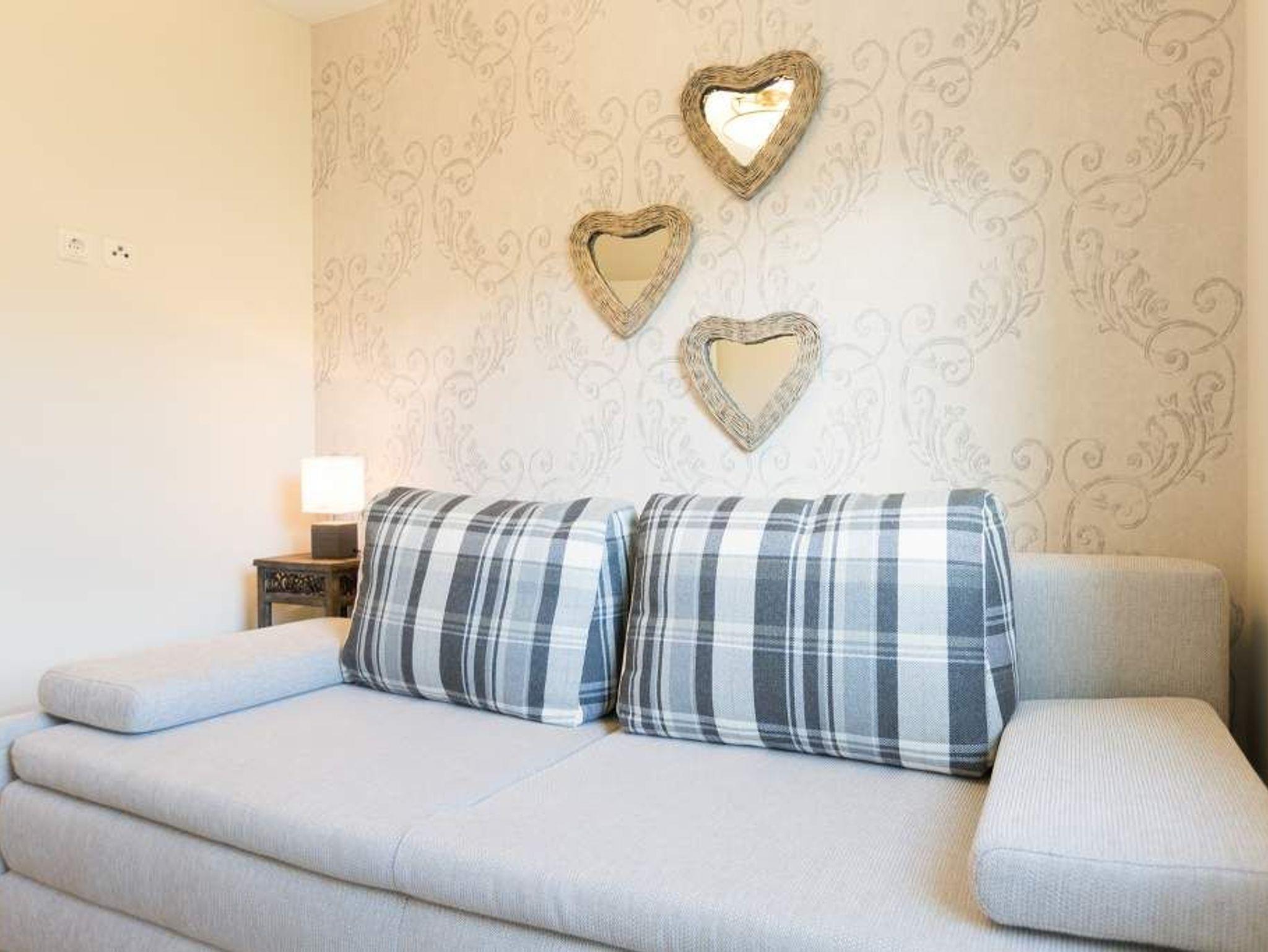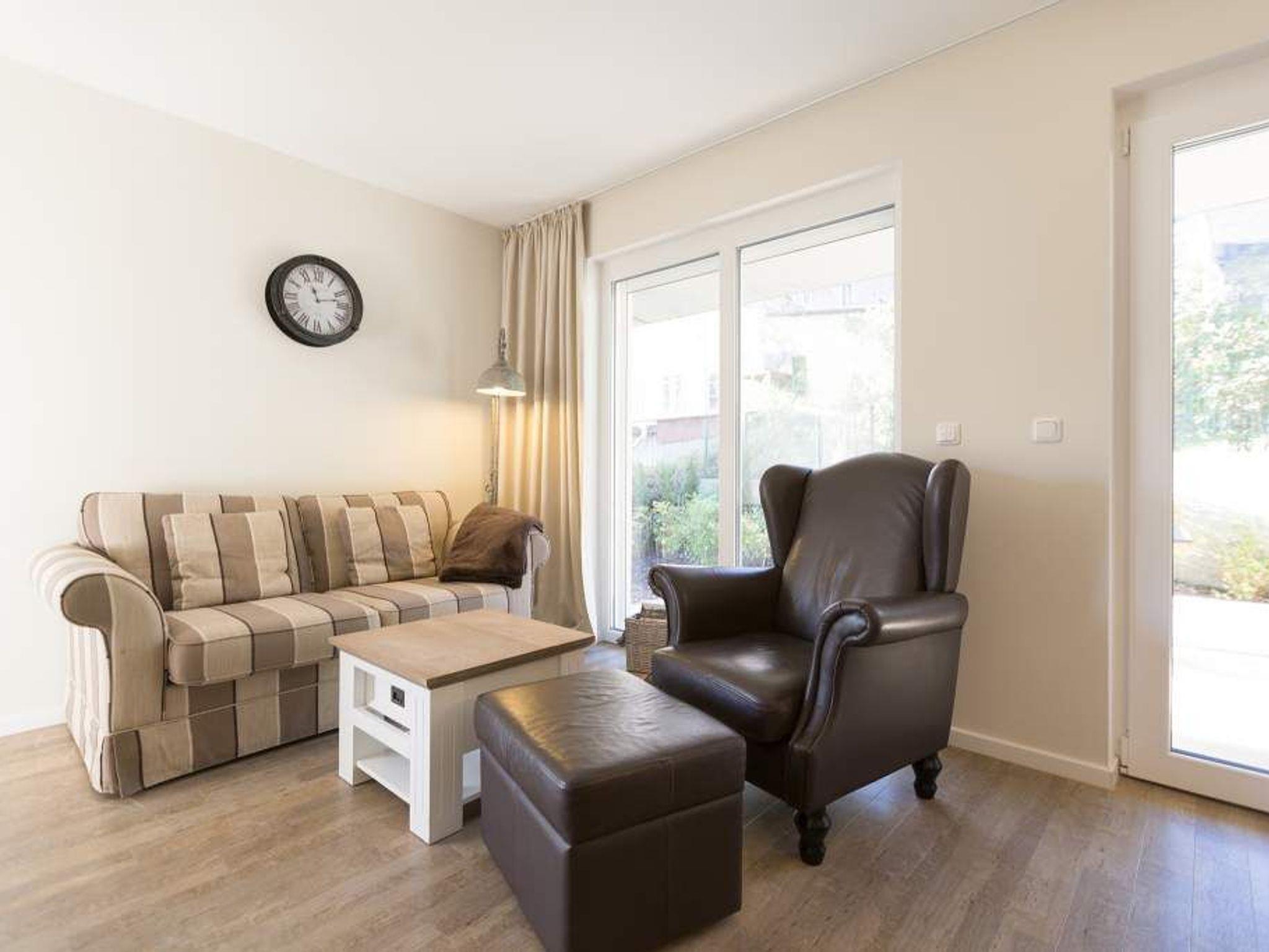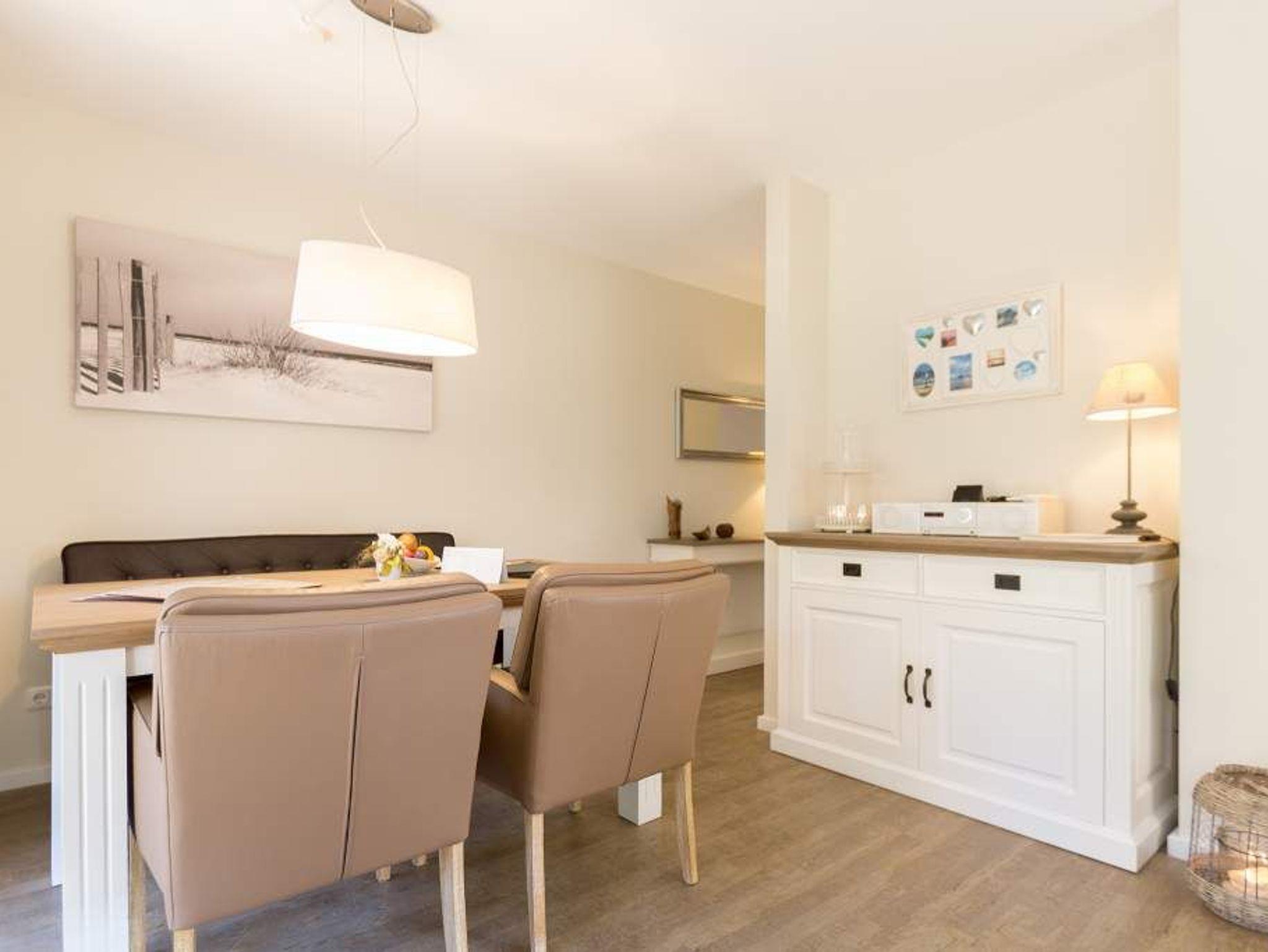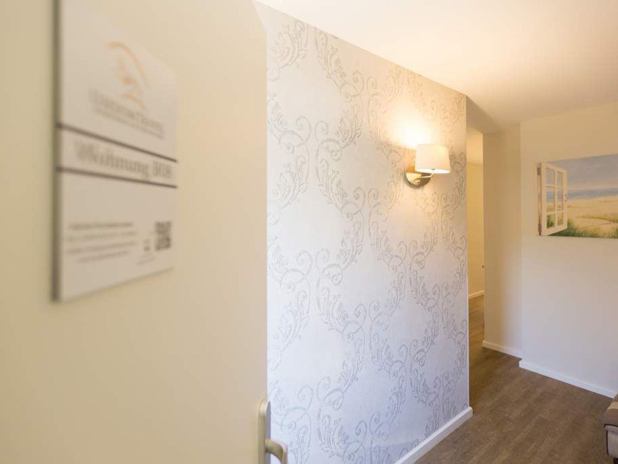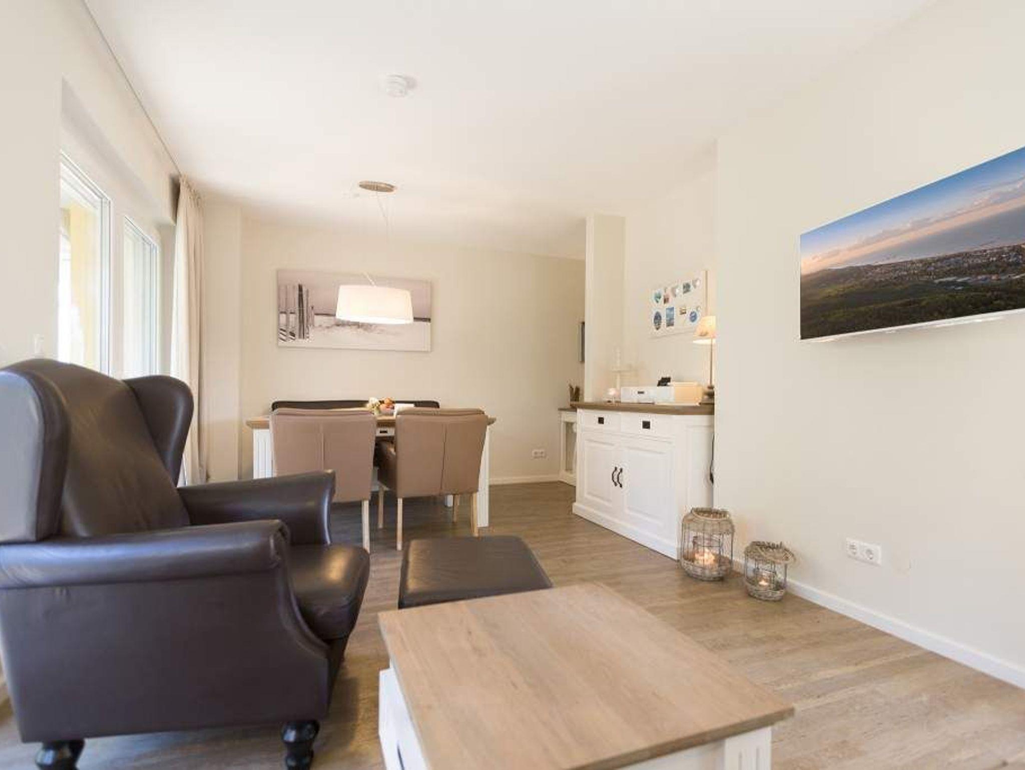 Ein lichtdurchflutetes Urlaubsdomizil erwartet Ostsee-Auszeitler im 1. Obergeschoss im Appartement 8. Via Fahrstuhl geht es hinein ins Urlaubsglück. Platz finden in dem 61 Quadratmeter großen Paradies bis zu drei Personen und ein Kind bis 15 Jahre. Gegen Aufpreis stellen wir Ihnen auch einen Kinderhochstuhl zur Verfügung. Kommen Sie erst einmal an und holen Sie tief Luft! Ostseeluft! Denn Strand und Wellen sind nur ein paar Gehminuten entfernt. Das geräumige Wohnzimmer bietet reichlich Platz zum Entspannen auf dem bequemen Sofa oder dem gemütlichen Ledersessel mit Lederhocker oder zum Essen am Holztisch. Von hier aus gelangen Sie auf die 24 Quadratmeter große Südterrasse. Die Wohnung ist im eleganten Landhausstil eingerichtet. Das weiße Mobiliar geht hier eine gelungene Kombination mit Naturmaterialien aus Holz ein. Gemütlichkeit schließt High End-Technik nicht aus. Ein großer Flat-TV mit Smart-Funktion sorgt für Unterhaltung. Außerdem stehen ein Blue-Ray-Player und eine Mini HiFi-Anlage mit IPod-Dockingstation sowie kostenfreies WLAN zur Verfügung. Die offene Wohnküche ist mit hochwertigen Küchengeräten voll ausgestattet. Das große Schlafzimmer lädt mit seinem bequemen Boxspringdoppelbett zum Träumen ein. Hier gibt es ebenfalls einen Flat-TV mit Smart-Funktion und einen Einbauschrank mit viel Ablagefläche. In einem zweiten Schlafzimmer befindet sich eine Boxspring-Schlafcouch zum Ausziehen (1,60 m x 2,00 m) und ebenfalls ein kleiner Flat-TV mit Smartfunktion. Das moderne Bad verfügt über Dusche, WC und Waschtisch. Für das Haus gibt es eine Waschmaschine und einen Trockner. Bei der Anreise sind die Betten bereits bezogen und Handtücher liegen bereit. Ein eigener Stellplatz in der Tiefgarage ist für Sie reserviert.