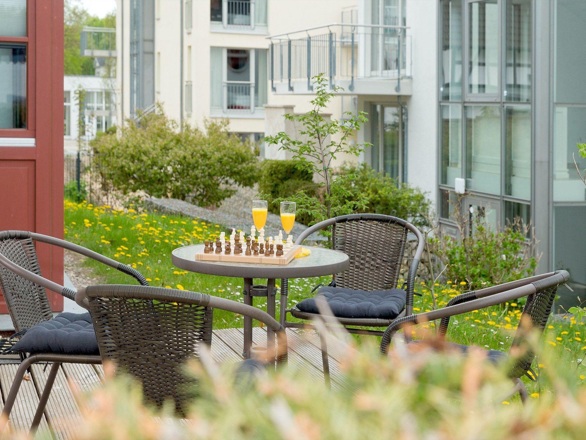 Die im Wohnbereich integrierte Küchenzeile lässt keine Wünsche offen: Kühlschrank mit Gefrierfach, 4fach Ceran-Kochfeld, Backofen, Mikrowelle, Geschirrspülmaschine, Kaffeemaschine, Toaster, Handrühgerät und Wasserkocher, u.v.m. Ein Esstisch für vier Personen ergänzt die Annehmlichkeiten. Die Terrasse erreichen Sie vom Wohnbereich. Lassen Sie den Urlaubstag beim Blick ins Grüne in aller Ruhe Revue passieren.