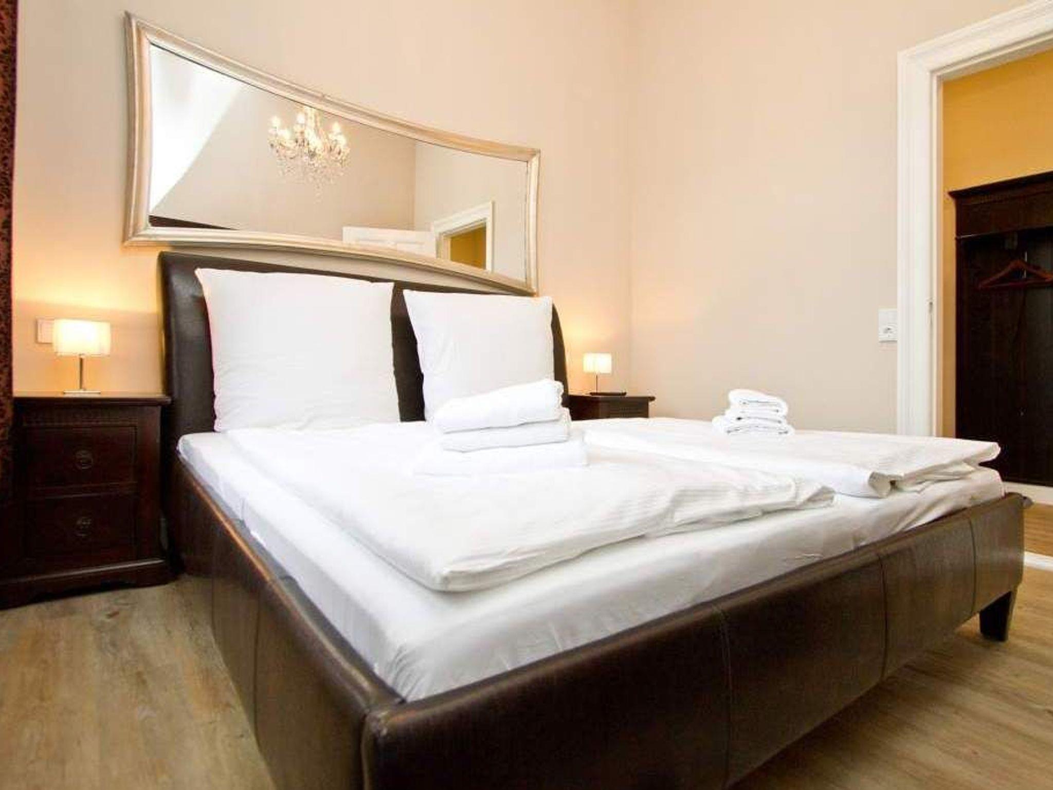 In der ersten Etage der historischen Gründerzeitvilla von 1880 befindet sich die liebevoll, gemütlich und klassisch eingerichtete 3-Raum-Ferienwohnung (68 m²) für 4 Personen und ein Kleinkind (bis 3 Jahre im Kinderreisebett). Der offene Wohnbereich ist ausgestattet mit einer gemütlichen Sitzgruppe, Kaminofen, Flat-TV und Blue-Ray- / CD-Player. Die vorgelagerte verglaste Loggia bietet sich an, um hier am Esstisch entspannt zu verweilen. Die bodentiefe Fensterfront lässt sich komplett zur Seite aufschieben, so dass man in der Loggia ein Balkonfeeling bekommt. Die voll ausgestattete Küche mit Herd/Backofen, Mikrowelle, Geschirrspüler und reichlich Geschirr, ist im Wohnbereich integriert und lädt zu geselligen Kochabenden ein. Es gibt zwei Schlafzimmer mit großen Doppelbetten, Kleiderschrank und Flat-TV, ein Bad mit Dusche/WC und zudem ein separates WC. Ein Pkw-Stellplatz befindet sich direkt am Haus. In dieser Wohnung können Sie kostenlos das W-LAN nutzen. Für kleine Gäste können Sie ein Kinderreisebett und einen Hochstuhl gegen Aufpreis dazu buchen.