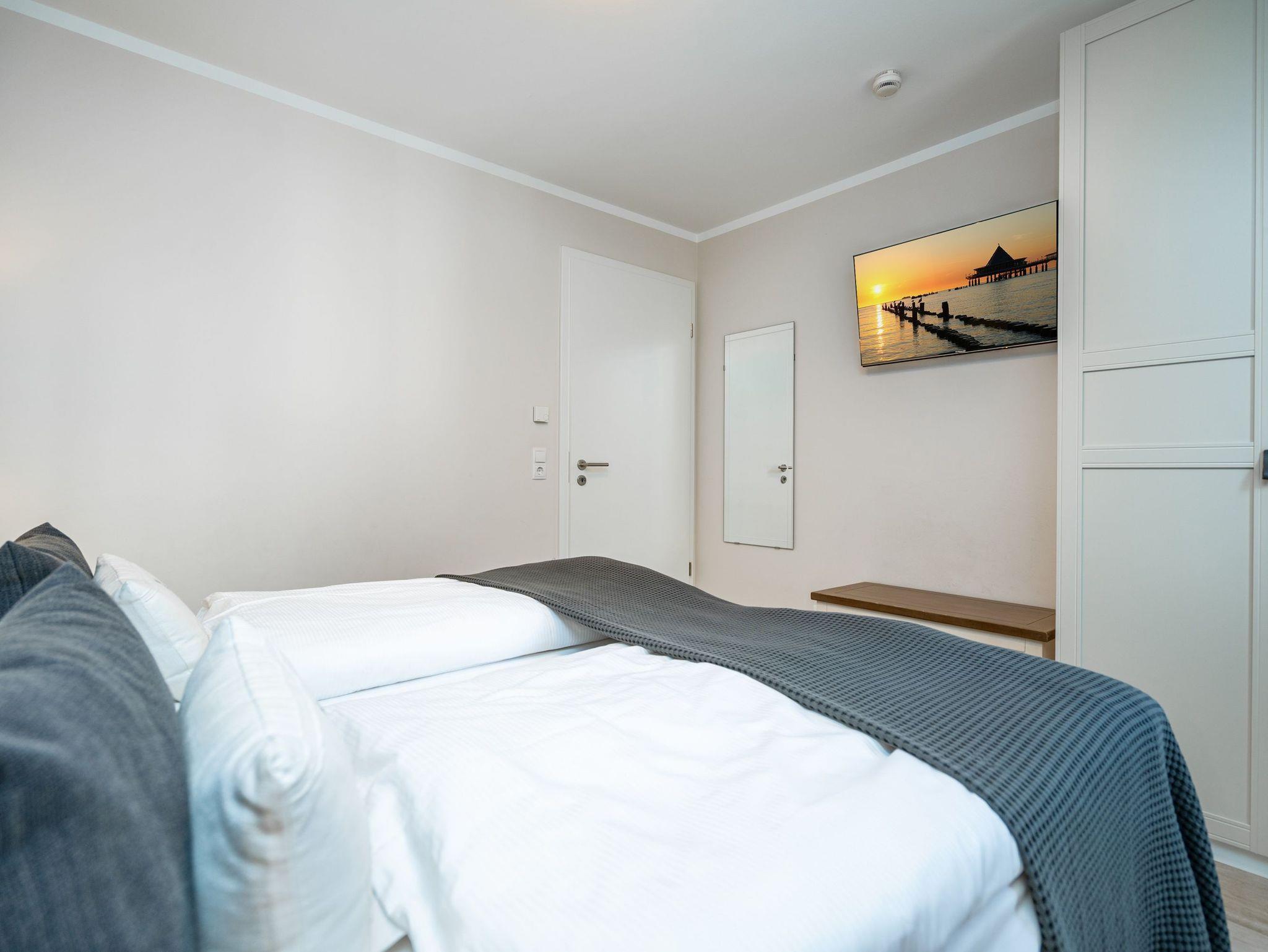 Auf 73 Quadratmetern bietet das Drei-Zimmer-Appartement Nummer 3 im 1. Obergeschoss alles, was man sich für einen entspannten Urlaub an der Ostsee nur wünschen kann. Viel Platz und eine Einrichtung zum Pudelwohlfühlen ? ein kleines Paradies für bis zu vier Personen wartet auf Sie. Das helle und geräumige Wohn-Esszimmer ist mit viel Geschmack und Zeitgeist eingerichtet. Hier spürt man die Liebe zum Interieur und zum Detail. Nordisches Landhaus-Design durchzieht jeden Raum. Naturmaterialien, ausgesuchte Accessoires und viel Komfort bestimmen die Ausstattung. Ob Sofa, Ohrensessel oder uriger Korbstuhl ? lassen Sie sich fallen und entspannen Sie einfach mal drauf los. Hier wird es Ihnen sicher leicht fallen. Vom Wohnzimmer geht?s auf einen schönen Süd-Balkon. Sonnenhungrige können hier neue Energie tanken. Ob Großer Flat-TV, hochwertige Musikanlage oder Kamin ? Unterhaltung wird hier zur puren Entspannung. Das offene Wohn-Esszimmer bietet mit seinem großen, runden Tisch und den bequemen Stühlen einen schönen Essplatz für genüssliche und gesellige Stunden. Die offene Küche ist mit allem ausgestattet, das Sie zum Kochen, Braten oder Backen brauchen. Hochwertige Markengeräte sind Ihnen fleißige Küchenhelfer. Vom Backofen, über den Geschirrspüler bis hin zur Kaffeemaschine ist alles da. Zwei Schlafzimmer schenken echtes Schlafvergnügen mit ihren komfortablen Boxspringdoppelbetten (1,80 m x 2,00 m). Ein zweiter Balkon in Ostausrichtung ist von beiden Zimmern aus begehbar. Genießen Sie hier schon morgens die aufgehende Sonne. In jedem Schlafzimmer gibt es einen Flat-TV. Viel Ablagefläche bieten die geräumigen Schränke. Ebenfalls zweifach vorhanden, ist das Badezimmer. Dusche, Waschtisch und WC gehören zur Ausstattung in beiden Räumen. Im Masterbad erwartet Sie darüber hinaus eine Finnische Sauna, in der Sie nach Herzenslust bei kuschelig warmen Temperaturen entspannen können. Handtücher liegen bei Anreise bereit und die Betten sind frisch bezogen. In der Tiefgarage ist für Sie ein Stellplatz reserviert. In dieser Wohnung sind Haustiere nicht erlaubt - jedoch ist diese nicht garantiert allergikerfreundlich.