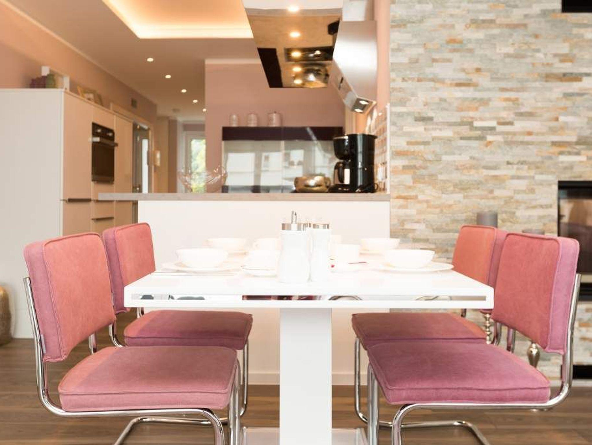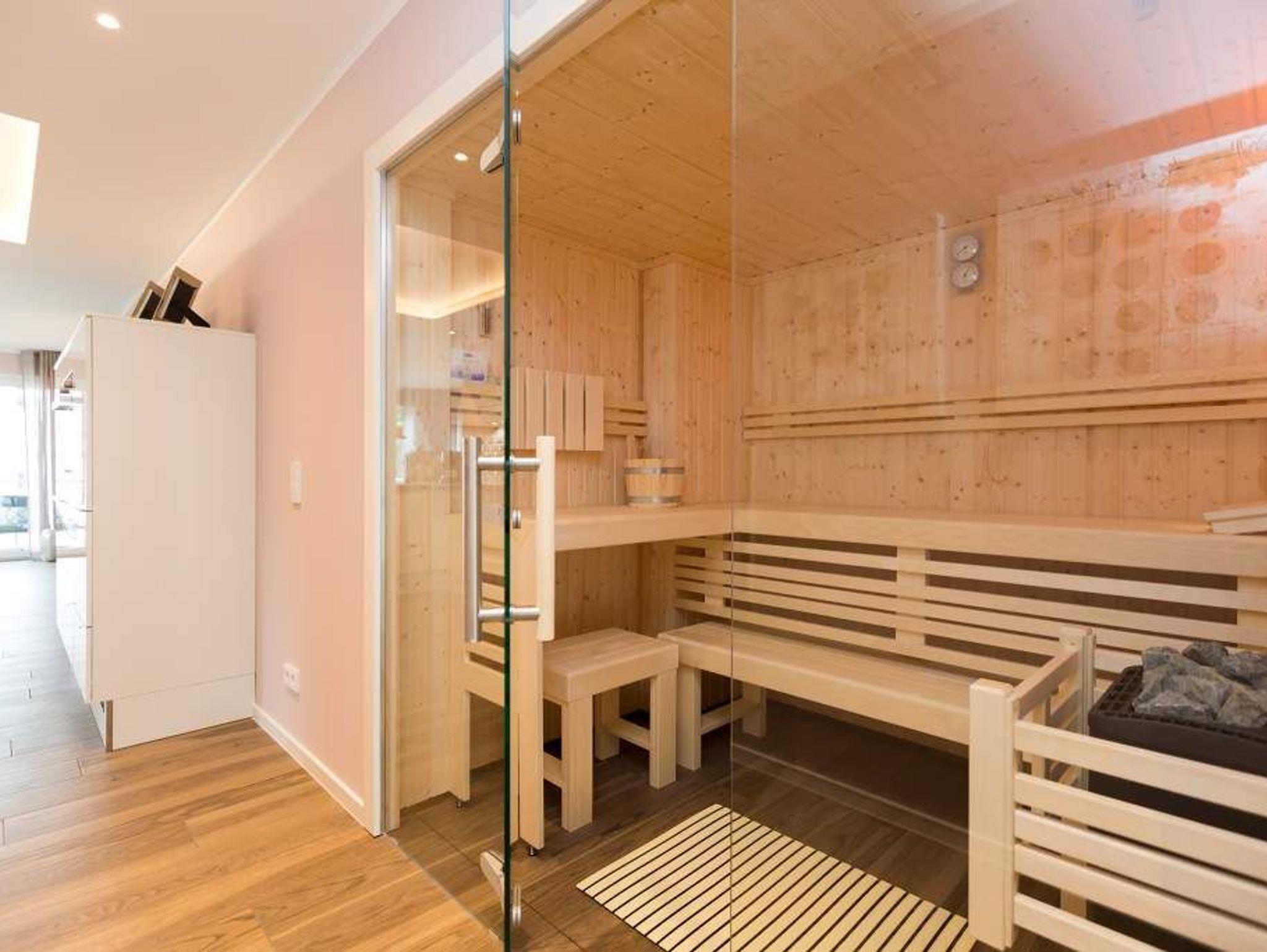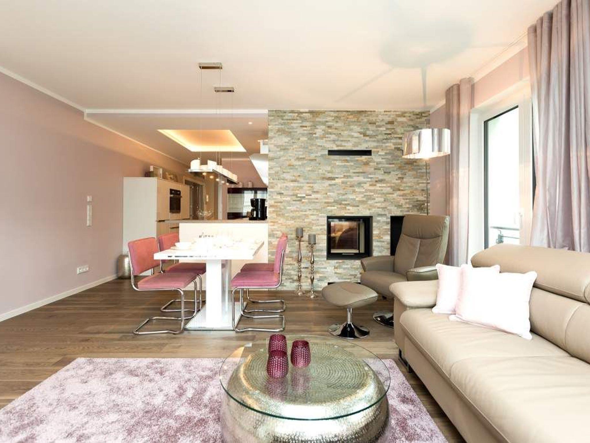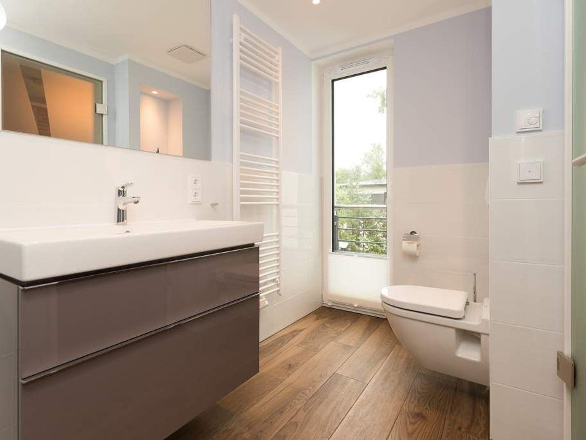 Der perfekte Urlaub beginnt mit dem perfekten Aufwachen in einer Wohnung, in der man sich rundum wohlfühlt. Eingekuschelt in die weißen Laken, noch einmal räkeln und ausstrecken in den herrlich bequemen Doppelboxspringbetten (1,80 m x 2,00 m) der beiden wunderbar lichtdurchfluteten Schlafzimmer ? schöner kann der Start in den Urlaubstag nicht sein. Die 87 Quadratmeter große Wohlfühlwelt der Wohnung Nummer 9 im zweiten Obergeschoss der Villa Strandgrün bietet in ihren drei Räumen Platz für vier Personen und ein Kleinkind im Kinderreisebett. Großzügig, hell und in zarten Rosé- und Violett-Tönen gehalten, strahlt das Appartement Eleganz und Leichtigkeit aus. Ob auf der komfortablen Sofalandschaft, dem gemütlichen Lesesessel oder am stylischen Designer-Esstisch ? hier kann man es sich gut gehen lassen. Ein absolut außergewöhnliches Highlight ist der Kaminofen, dessen romantisches Flackern sowohl vom Wohnzimmer als auch von einem der beiden Schlafzimmer aus genossen werden kann. Flat-TVs gibt es in jedem der drei Zimmer. Vom Wohnzimmer aus geht es auf den großen Südbalkon mit Gartenmöbeln, Sonnenliege und Blick auf den begrünten Garten und die umliegenden Bädervillen. Die offene Küche mit Metrofliesen ist mit hochwertigen Geräten und Design-Geschirr ausgestattet. Jedes Schlafzimmer verfügt über Einbauschränke und ein eigenes Bad mit Dusche, Waschtisch und WC. Natürlich können die Schlafzimmer verdunkelt werden. Eine geräumige Panorama-Sauna auf dem Flur lädt zum wohligen Abschalten an kühlen Tagen und Abenden ein. Ein kleiner Hauswirtschaftsraum bietet Stauraum. Damit Sie sich so richtig entspannen können, sind die Betten bezogen und Handtücher liegen für Sie bereit. In der Tiefgarage ist ein Stellplatz reserviert. Im wohnungseigenen Kellerraum ist Platz für maximal 2 Fahrräder.