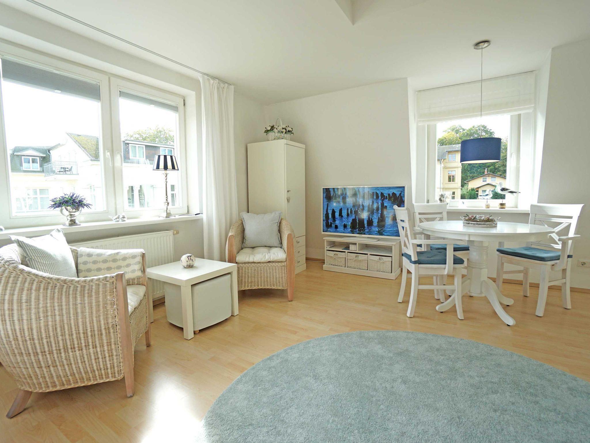 Mit dem Komfort eines Neubaus und der reizvollen Nähe zu mondänen Villen der Gründerzeit empfängt Sie die Villa Seestern im Neuen Weg im Seebad Heringsdorf. Die komfortable 1-Zimmerwohnung (Nichtraucher) im Dachgeschoss (2.Etage) des Hauses ist 40 qm groß und bietet zwei Personen Platz. Die Wohnung verfügt über ein komplettes Wohnzimmer mit Esstisch, Radio, Smart-TV einem komfortablen Doppelbett mit Komforthöhe, sowie eine komplett ausgestattete Küchenzeile mit Geschirrspüler, Herd mit Ceranfeld. usw. und eine sonnige offene Loggia in Südlage mit Gartenmöbeln. Ein PKW-Stellplatz sowie ein geräumiger, abschließbarer Fahrradkeller ist vorhanden. Handtuchpakete, Kinderreisebetten, und Hochstühle können kostenpflichtig ausgeliehen werden. Die in den Kaiserbädern fällige Kurtaxe ist bar vor Ort bei Anreise zu zahlen.