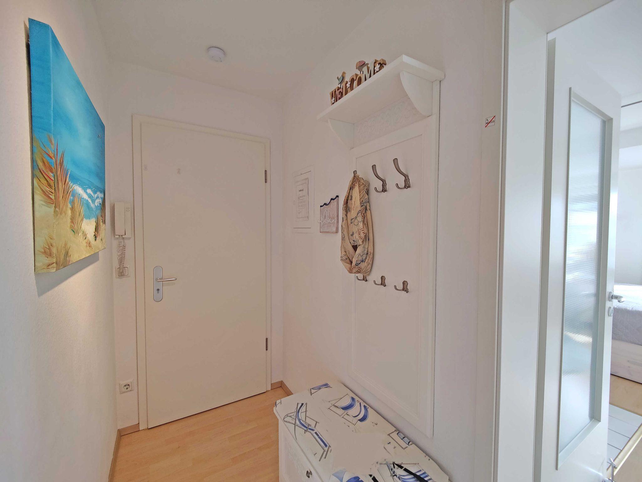 Die komfortable 1-Zimmerwohnung im Dachgeschoss (2.Etage) des Hauses ist 40 qm groß und bietet zwei Personen Platz. Die Wohnung verfügt über ein komplettes Wohnzimmer mit Esstisch, Radio, Smart-TV, einem Doppelbett mit Komforthöhe (1,80 m Liegefläche), sowie eine komplett ausgestattete Küchenzeile mit Geschirrspüler, Herd mit Ceranfeld. usw. und eine sonnige Loggia in Südlage mit münzbetriebenem Heizstrahler und Gartenmöbeln.
