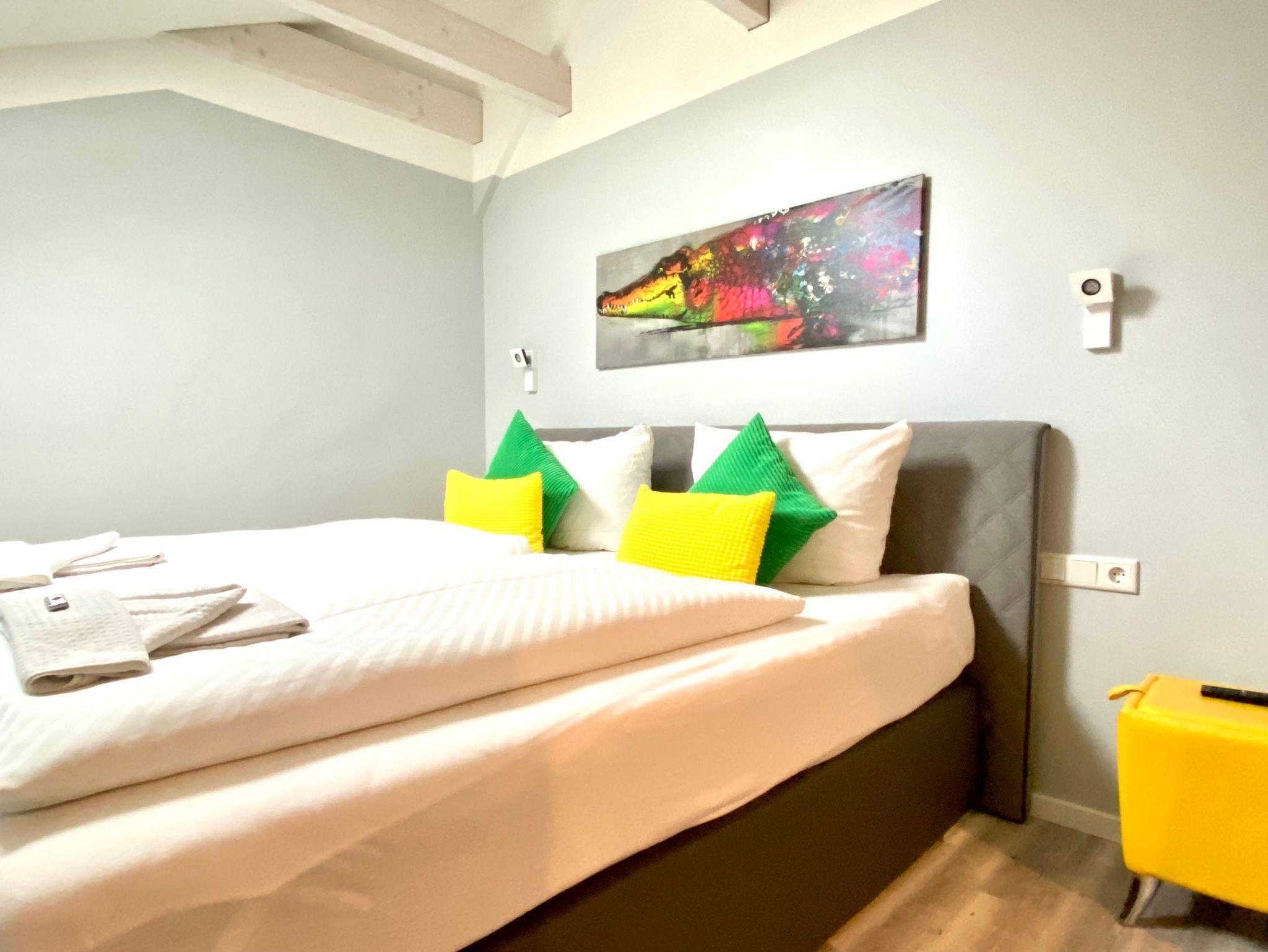 Auch der Anbau der Villa Anna wurde liebevoll saniert. Hier entstanden zwei schöne Ferienwohnungen, im Erdgeschoss die Kleine Anna, die ebenso modern und stilsicher eingerichtet wurde. Auf dem Grundstück gibt es pro Ferienwohnung einen Stellplatz und eine Aufladestation für E-Autos inklusive.