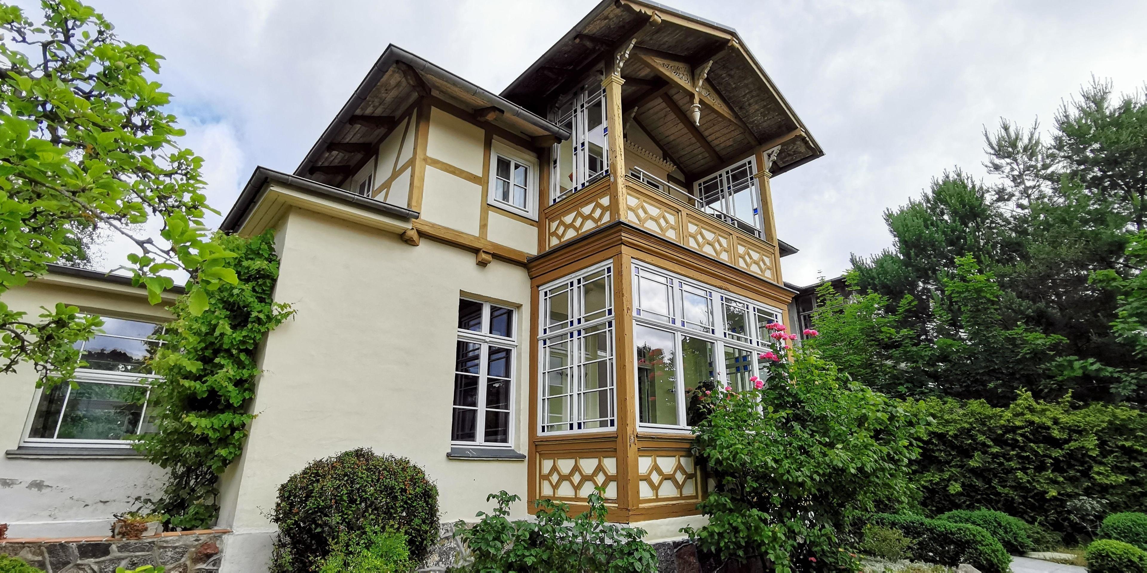 Sie wollen auch im Urlaub nicht auf Komfort verzichten? Dann kommen Sie zu uns in den Salon. Schon von außen imponiert die Villa mit ihrem typischen Bäderarchitekturstil. In sehr ruhiger Lage werden Sie von einem großen, grünen Grundstück mit Rasenflächen und Sonnenterassen begrüßt.