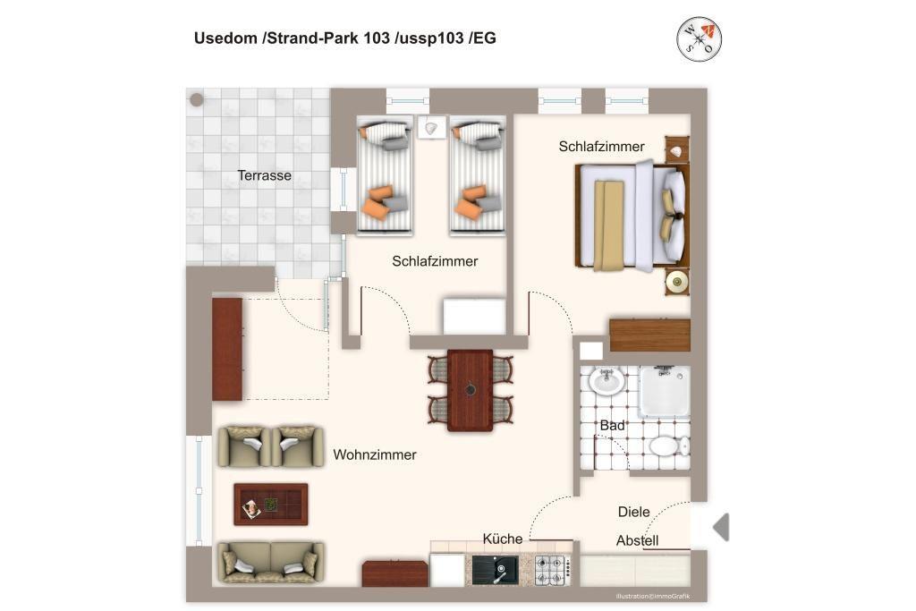 Das Apartment mit 3 Zimmern auf 56 qm und einer schönen Terrasse ist für bis zu 4 Personen geeignet. Besonders beliebt sind der direkte Strandzugang und die schöne Lage inmitten einer Parkanlage.