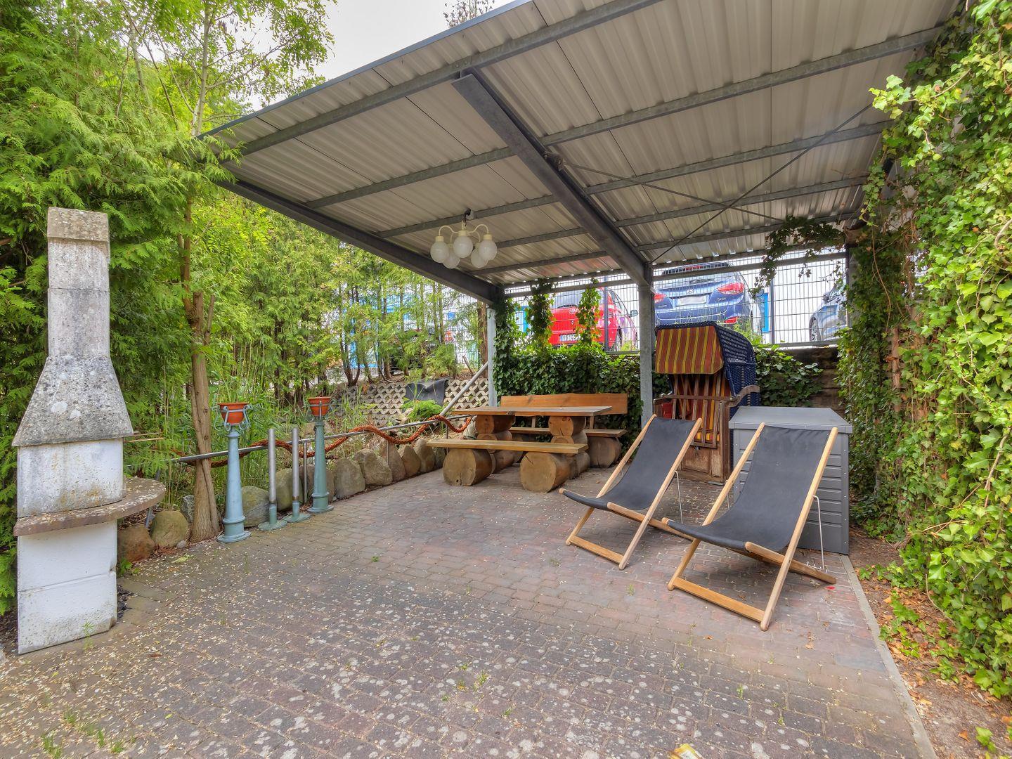 Im Außenbereich erwartet Sie eine gemeinschaftlich nutzbare Sitzecke mit Grill – perfekt für gesellige Stunden im Freien.