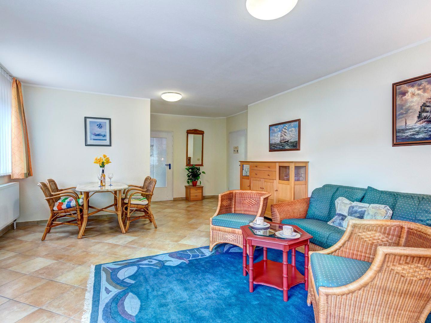 Die charmante 2-Raum-Ferienwohnung "Marie 1" ist ideal für Paare oder kleine Familien mit einem Kind. Der großzügige Wohnbereich mit Balkon bietet einen perfekten Ort zum Entspannen und Verweilen.