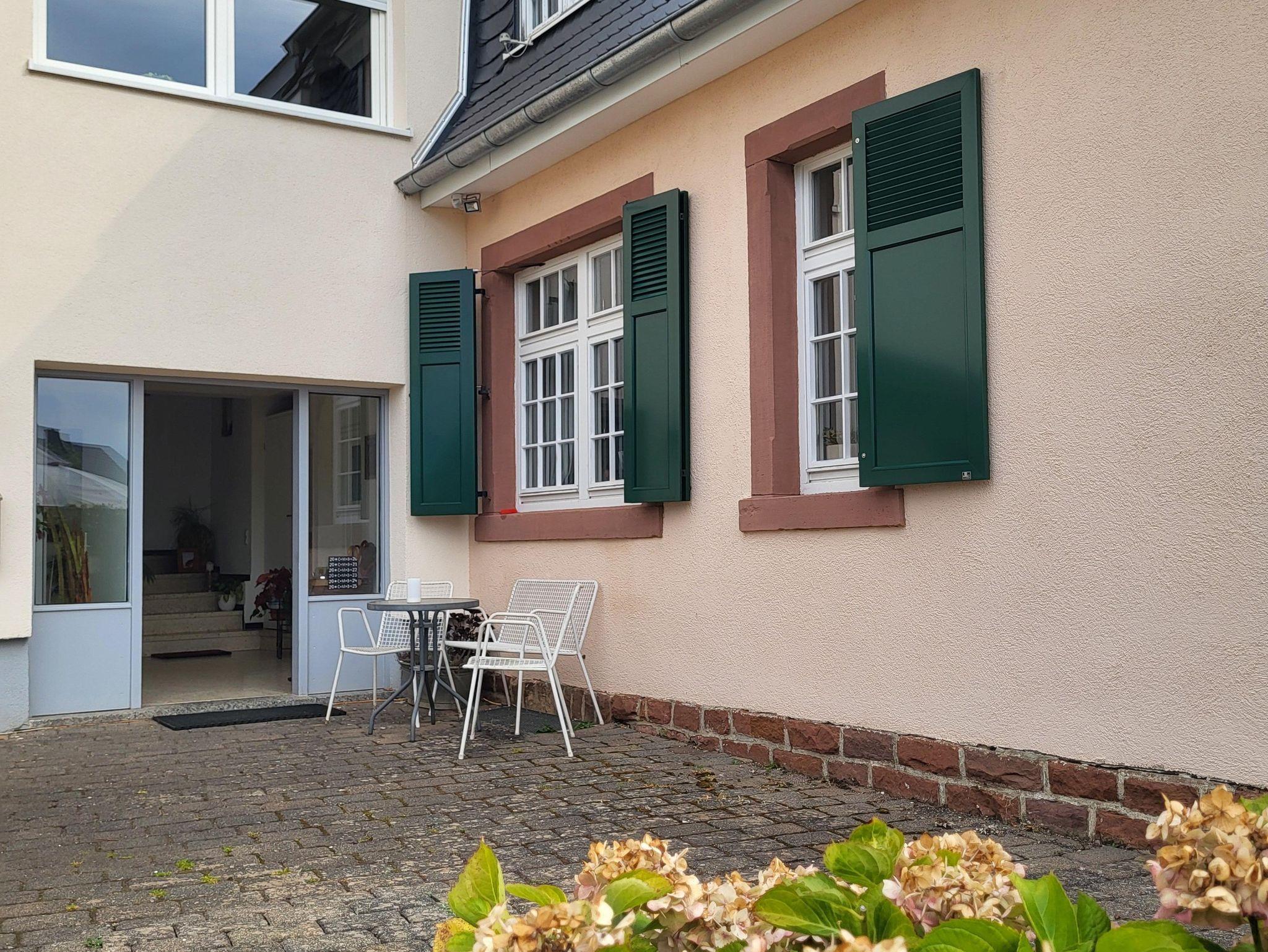 Ihr rund 65 qm großes Feriendomizil befindet sich im Anbau unserer 100 Jahren alten Villa. Das großzügige Doppelschlafzimmer verfügt über ein Doppelbett, das auf Wunsch in zwei separate Betten geteilt werden kann. In der vollausgestatteten Küche mit Zugang zum Balkon befinden sich eine Waschmaschine, eine Kühl- Gefrierkombination und ausreichend Stauraum auch für längere Aufenthalte in unserer Region. Vom Schlafzimmer aus erreichen Sie das Bad mit ebenerdiger Dusche. Alle Zimmer sind hell und haben Außenfenster. Im Wohnzimmer, das ebenfalls einen Zugang auf den mit Pflanzen beschatteten Balkon gewährt, befinden sich das große Bettsofa, eine Essecke und eine Vielzahl an ausgewählten Büchern, insbesondere von Autoren aus der Region. Wir laden Sie ein im Hängesessel auf dem geschützten Balkon mit einem guten Buch zu entspannen und Ihren Aufenthalt hier in vollen Zügen zu genießen.