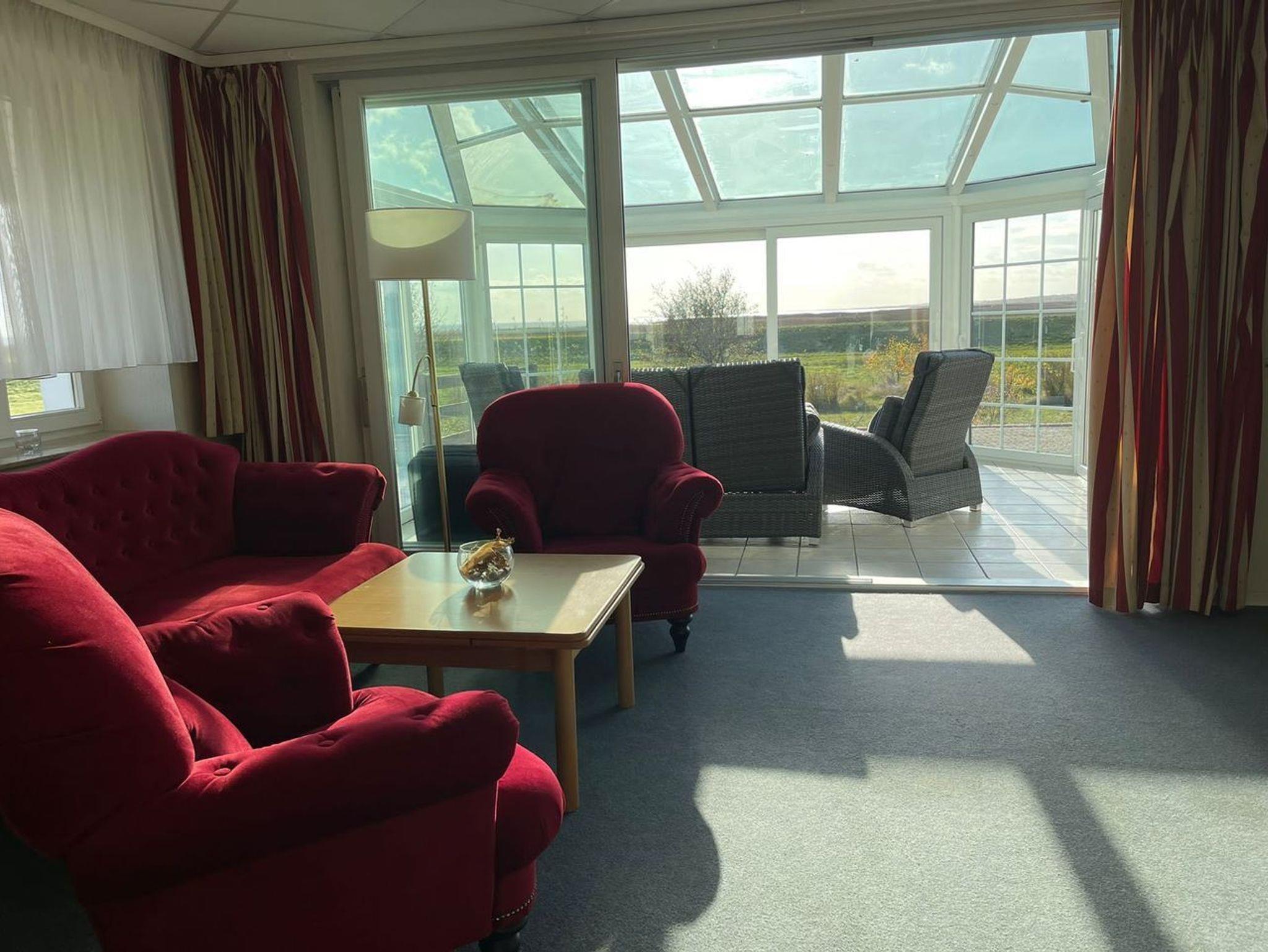 Das großzügige 4-Raum-Appartement befindet sich im Hochparterre des Süderhauses und bietet mit seinen 70 Quadratmetern ausreichend Platz für bis zu 5 Personen.[nbsp] Der kombinierte Wohn- und Essbereich ist mit einem gemütlichen Sofa, einem Flat-TV und einem Esstisch für 5 Personen ausgestattet. Vom angrenzenden Wintergarten und der Terrasse im Grünen können Sie in den Abendstunden einen unvergesslichen Sonnenuntergang bei einem schönen Glas Wein genießen.[nbsp] Die separate Küche lässt keine Wünsche offen und ist mit einem Kühlschrank mit Gefrierfach, Backofen mit Kochfeld mit 2 Platten,[nbsp] Wasserkocher, Toaster, Kaffeemaschine, Gläser, Besteck, sowie Kochutensilien ausgestattet.[nbsp] Das erste und das zweite Schlafzimmer verfügen jeweils über ein bequemes Doppelbett. Im dritten Schlafzimmer befindet sich eine Couch mit Auszieh- und Schlaffunktion.[nbsp] Im Badezimmer sind Dusche, WC und Haartrockner für Sie vorhanden.