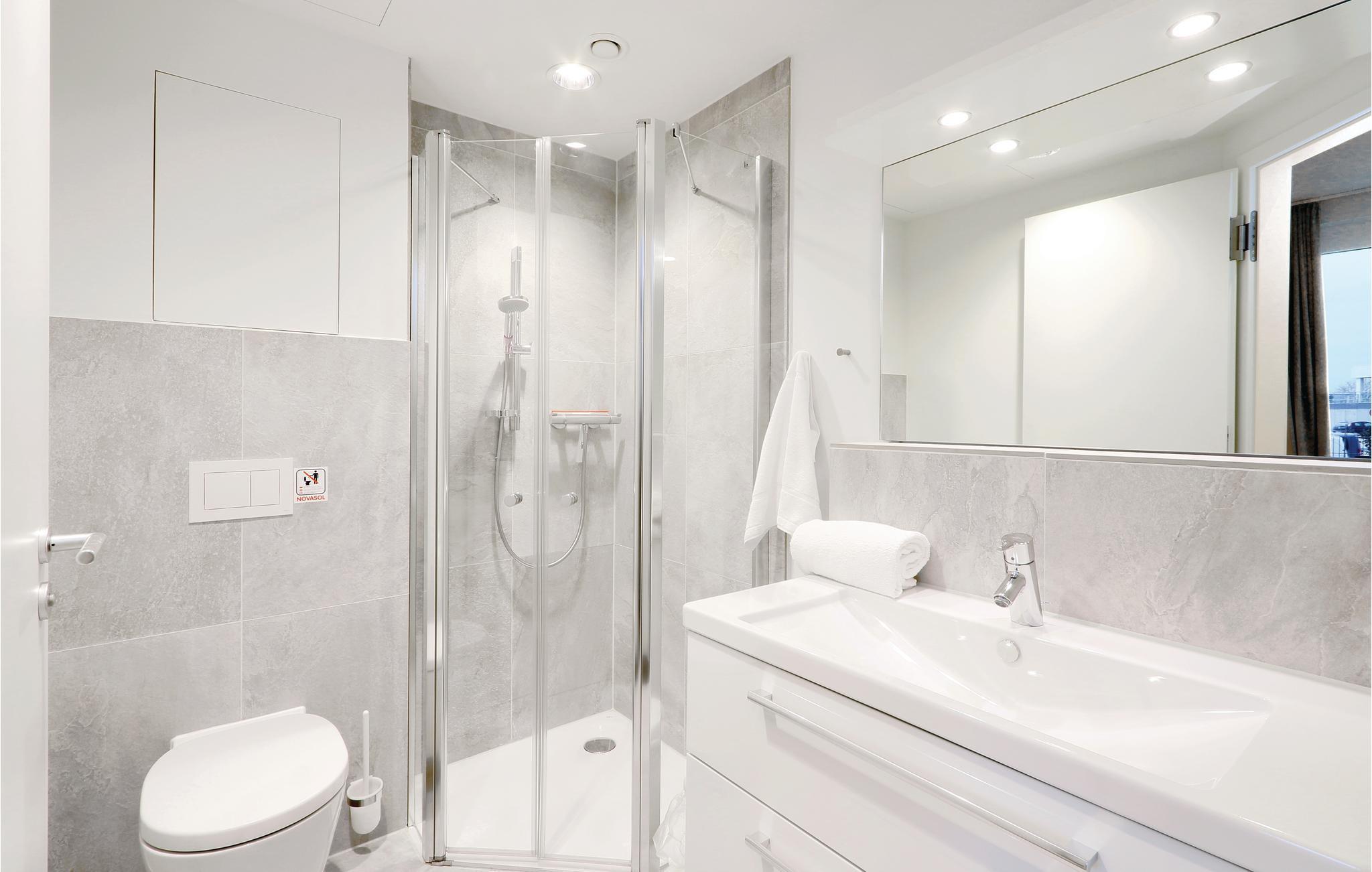 Badrum (nr. 1) - WC: Varmt och kallt vatten. Dusch