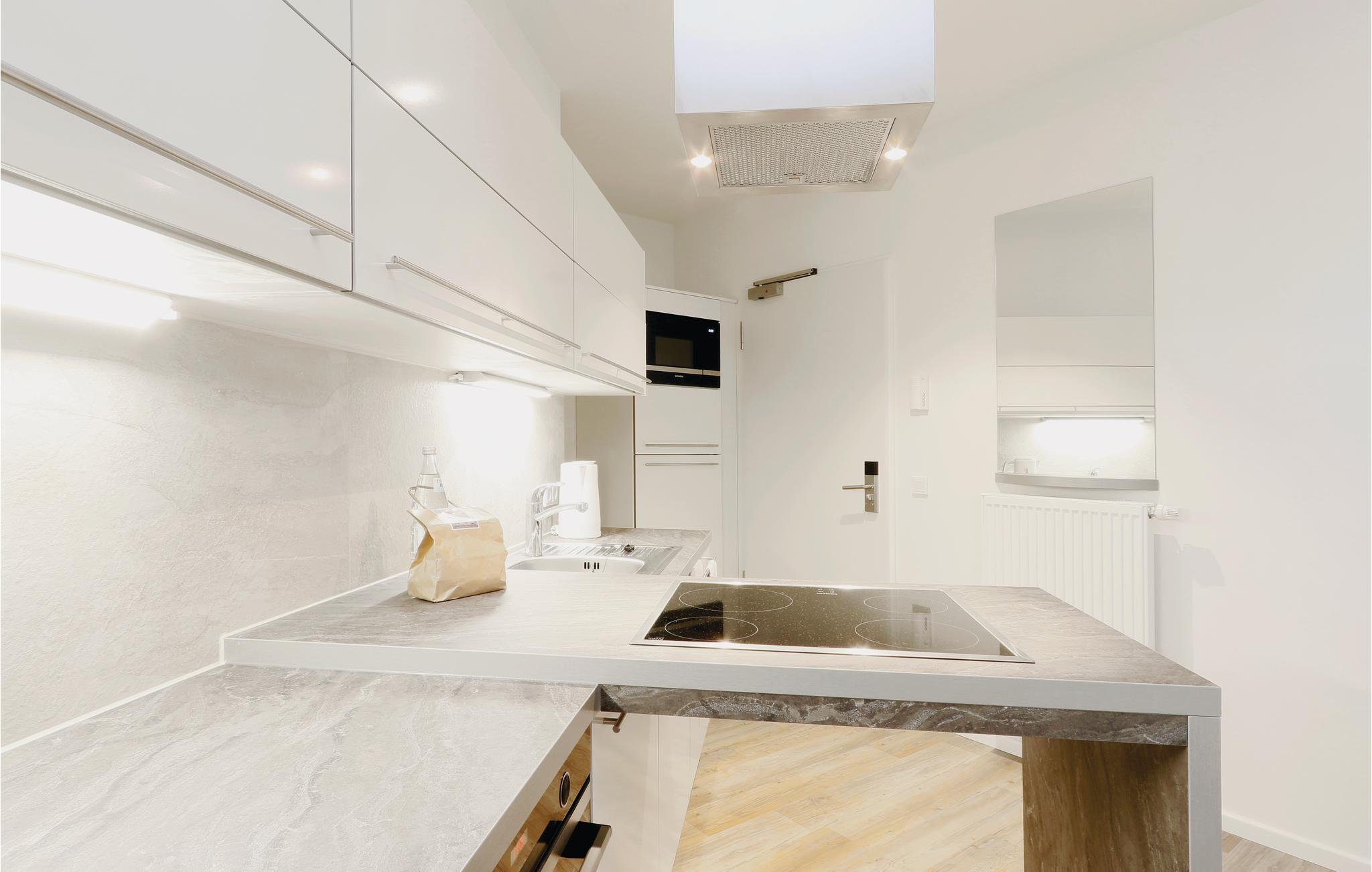 Det moderna pentryt erbjuder tillräckligt med utrymme för matlagning och är utrustat med högkvalitativa märkesapparater. Här hittar doftälskare en Nespressomaskin (ta med egna kapslar) samt en termosflaska och ett handfilter för hemmabryggning, om du trots allt föredrar det klassiska filterkaffet.