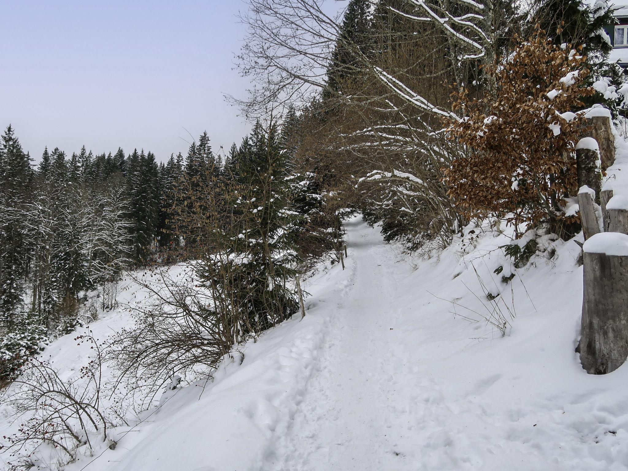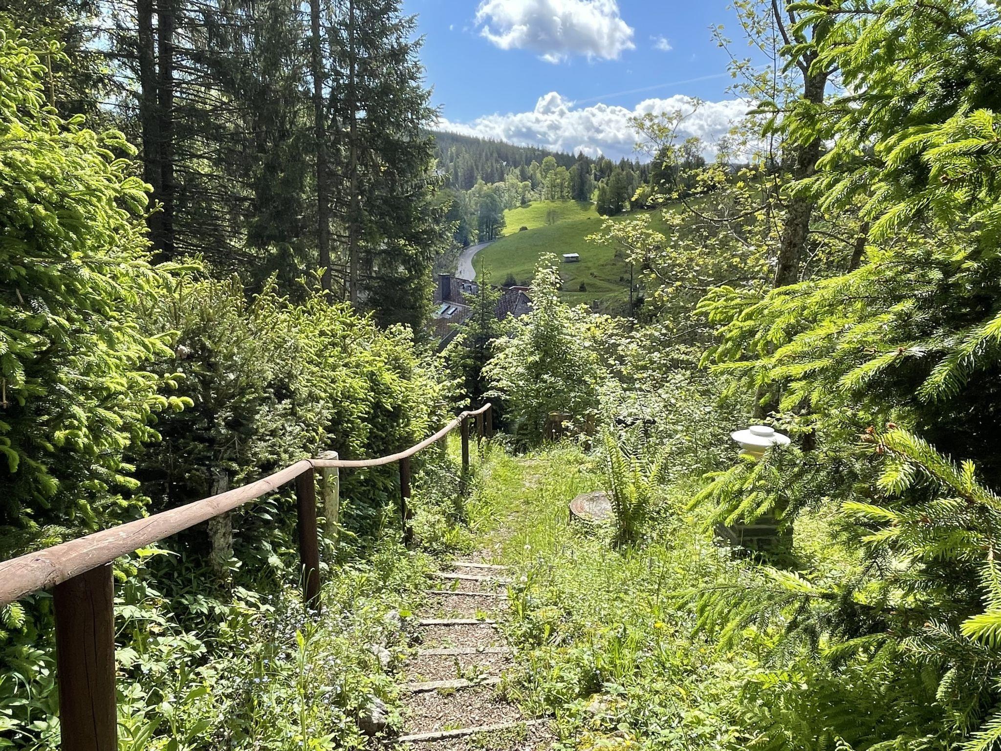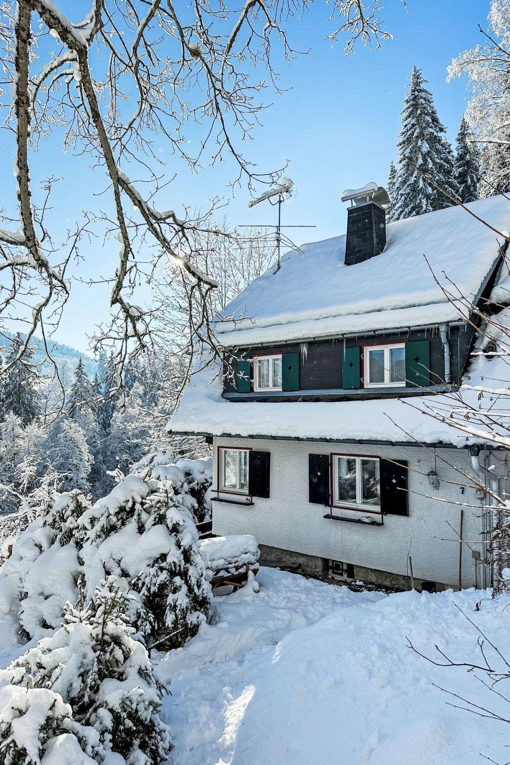 Single-family house "Kesslerberg", 2 storeys, detached, surrounded by trees. 1 km from the centre of Hinterzarten, on the outskirts, 8 km from the centre of Titisee, 28 km from the centre of Freiburg, in a quiet, elevated position on a slope, 5 m from the edge of the forest, in a cul-de-sac. Private: natural state property with trees, meadow. Stepped path (30 steps) to the house. Parking at the house at 100 m. Shop 1 km, supermarket 1.5 km, restaurant 1 km, bar 1 km, bakery 1 km, café 1 km, bus stop "Blumenladen" 1.7 km, railway station "Hinterzarten" 1.6 km, indoor swimming pool 8 km. Walking paths from the house 5 m, ski lift 3 km, slopes 3 km, sled run 300 m, cross country ski track 100 m, ice rink 200 m. Nearby attractions: Skimuseum Hinterzarten 100 m, Titisee 8 km. Well-known ski regions can easily be reached: Feldberg 20 km. Well-known lakes can easily be reached: Matisleweiher 2 km, Titisee 8 km. Hiking paths: vor Ort. Please note: car recommended.