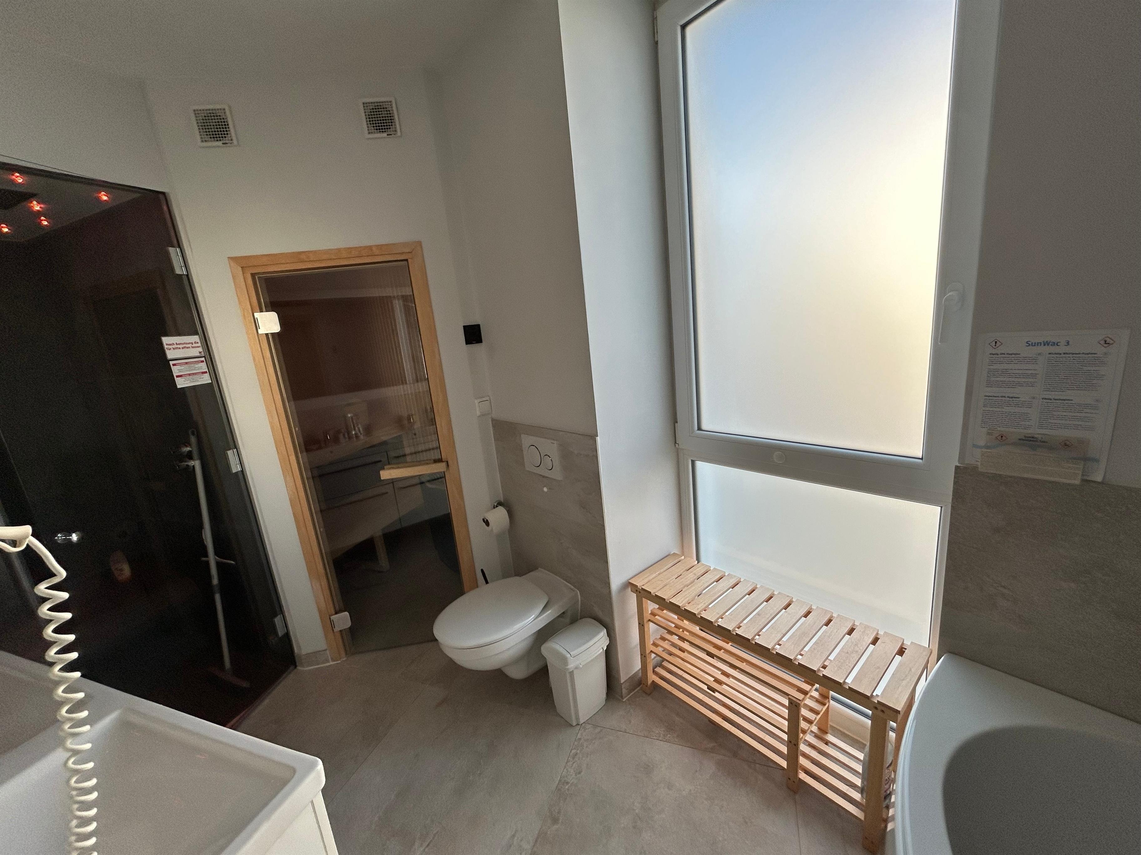 Die Wohnung ist stilvoll, hochwertig und modern eingerichtet. Ein besonderes Highlight ist ihr persönlicher Wellnessbereich mit Sauna, Whirlpool und Dampfbad mit integrierter Doppel-