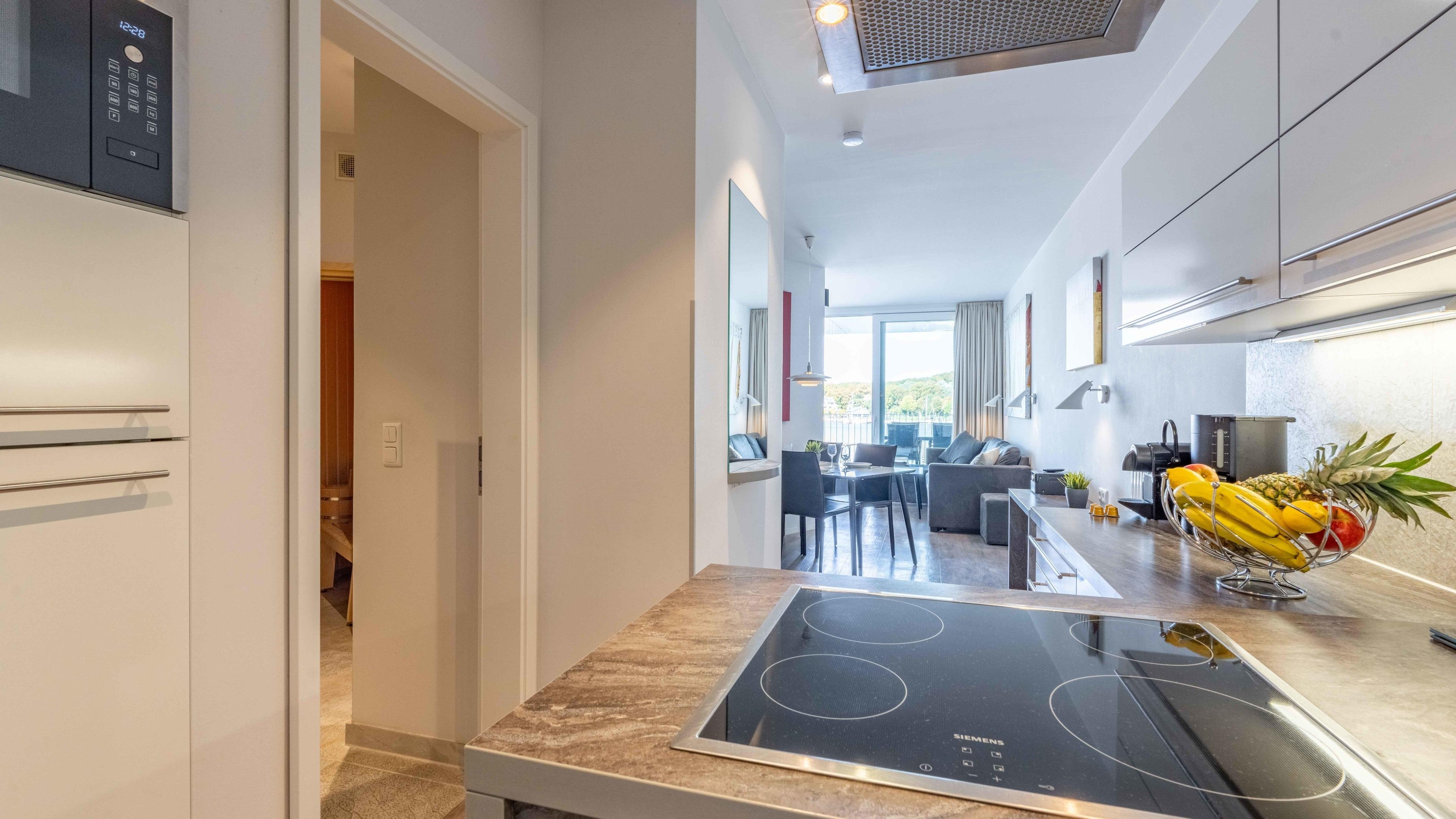 Die Wohnung ist stilvoll, hochwertig und modern eingerichtet. Ein besonderes Highlight ist ihr persönlicher Wellnessbereich mit Sauna, Whirlpool und Dampfbad mit integrierter Doppel-