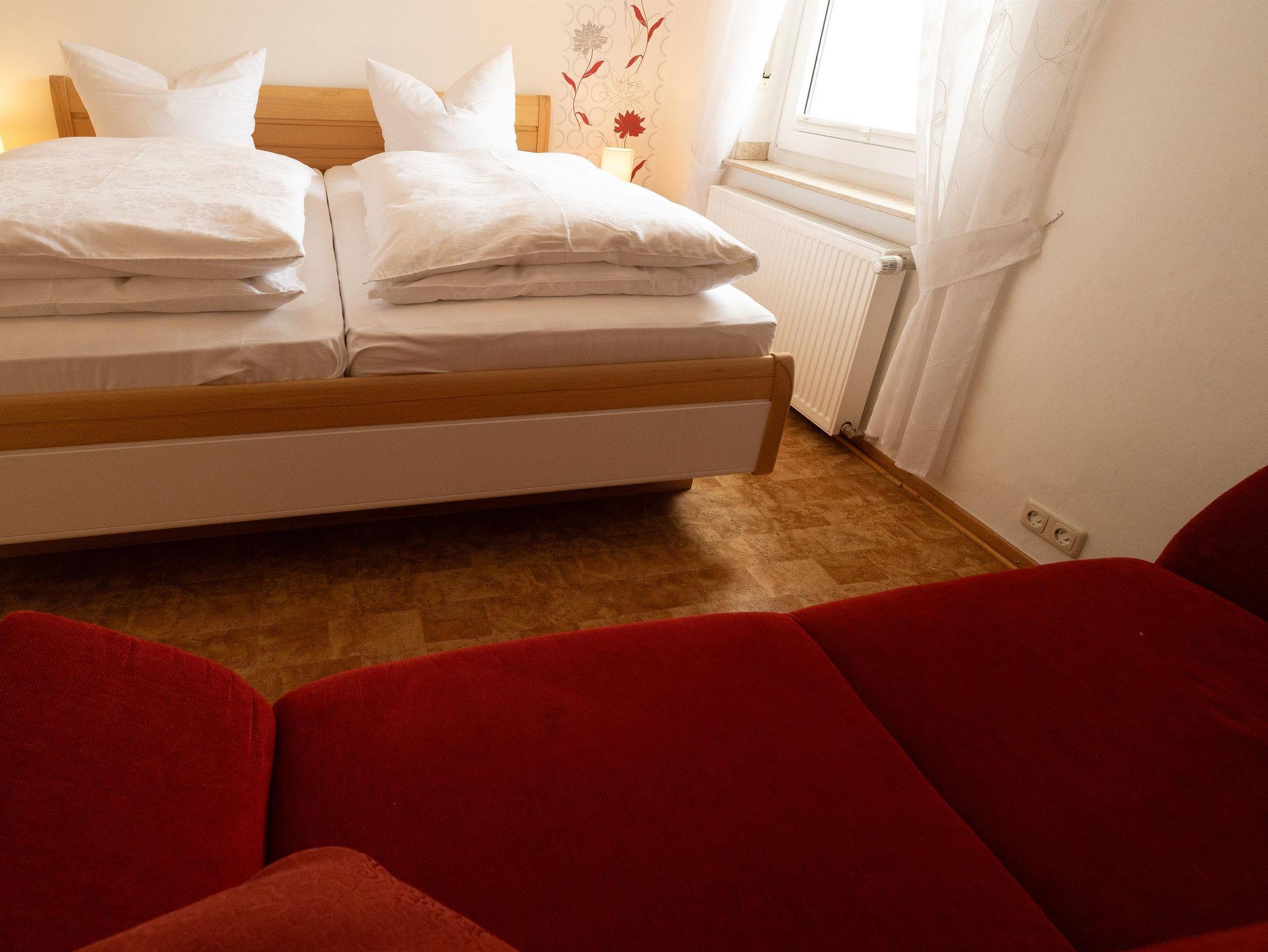 Großzügige 90 m² große Ferienwohnung im ersten Obergeschoss des Haupthauses – ideal für bis zu vier Personen, zusätzlich mit Schlafcouch. Die Wohnung verfügt über vier Zimmer, Küche, Bad und Balkon. Die große Wohnküche ist vollständig ausgestattet mit Spülmaschine, Kaffeemaschine, Toaster, Wasserkocher, Elektroherd, Dunstabzugshaube, Backofen, Kühlschrank und ausziehbarem Esstisch. Ein gemütliches Wohnzimmer mit Flat-TV, ein Gäste-WC sowie ein großzügiges Badezimmer bieten hohen Komfort. Bettwäsche, Geschirr- und Handtücher, WLAN und Endreinigung sind inklusive.