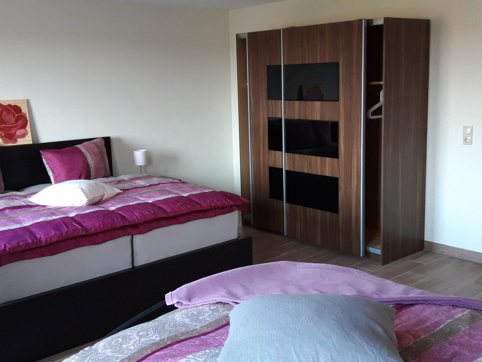 Ob Spülmaschine, Backofen, Kaffeemaschine mit zweiter Kanne, Brotschneidemaschine, Toaster, Waschmaschine, Flachbildfernseher oder Kamin, die Wohnung ist vollständig ausgestattet. Die 100 m² große Ferienwohnung mit zwei Schlafzimmern und mind. 5 Schlafplätzen - (Ausnahme 7 Erwachsene) liegt in ruhiger, ländlicher Umgebung.