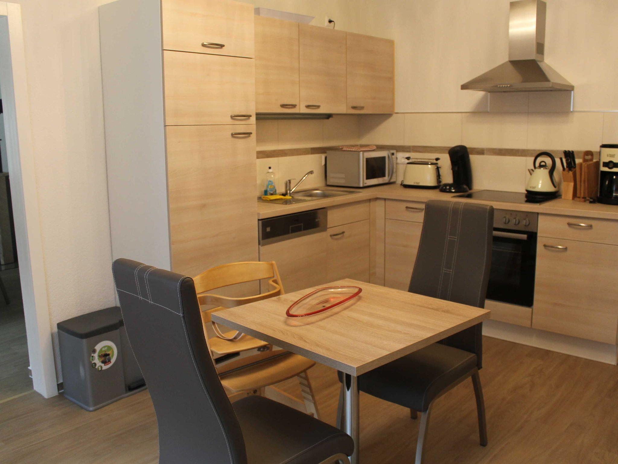 Küche: Kühlschrank, separate Tiefkühltruhe, Geschirrspüler, Toaster, Mikrowelle, Backofen, Herd mit Ceranfeld, Wasserkocher, Kaffeemaschine