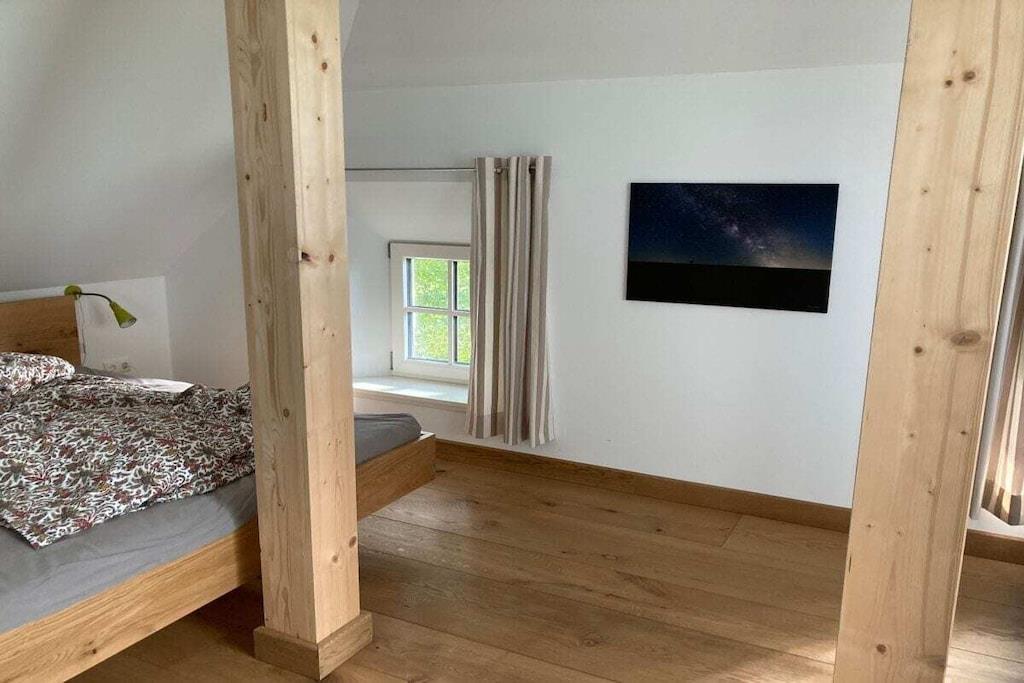 Belägen på en 2 hektar stor tomt med egen damm och liten skogsmark, ståtar denna lyxfastighet med fri utsikt i alla riktningar. Den har designklassiker och högkvalitativa snickerier, massiva trägolv och handsnidade kakelplattor. Charmen från den gamla fiskarstugan har bevarats, men fastigheten har totalrenoverats med moderna badrum, bastu, golvvärme och mer. Den stora lägenheten ståtar med 170 m² golvyta, ett mycket rymligt vardagsrum med matplats och ett modernt kök med SMEG- och Miele-apparater. På övervåningen finns en wellnessavdelning med bastu och träbadtunna, samt två mycket stora sovrum med hisnande utsikt över de vidsträckta frisiska fälten.