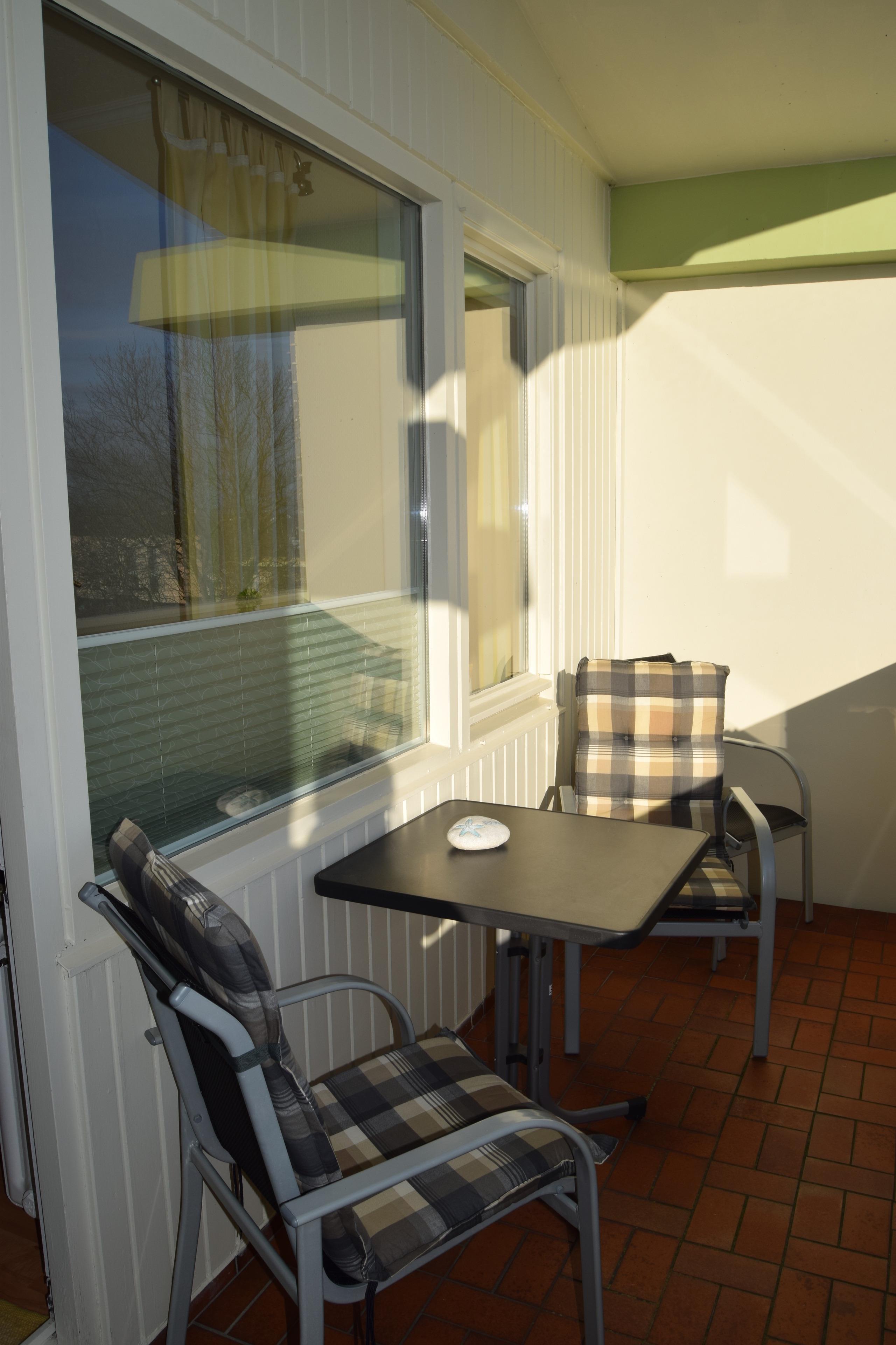 Unser Appartement befindet sich im obersten Stockwerk des 4-geschossigen Hauses "Lübeck". Durch diese Lage ist die Wohnung hell und freundlich. Der überdachte Balkon ist möbliert, so dass Sie dort Ihr Frühstück in der Morgensonne mit Blick ins Grüne genießen können.