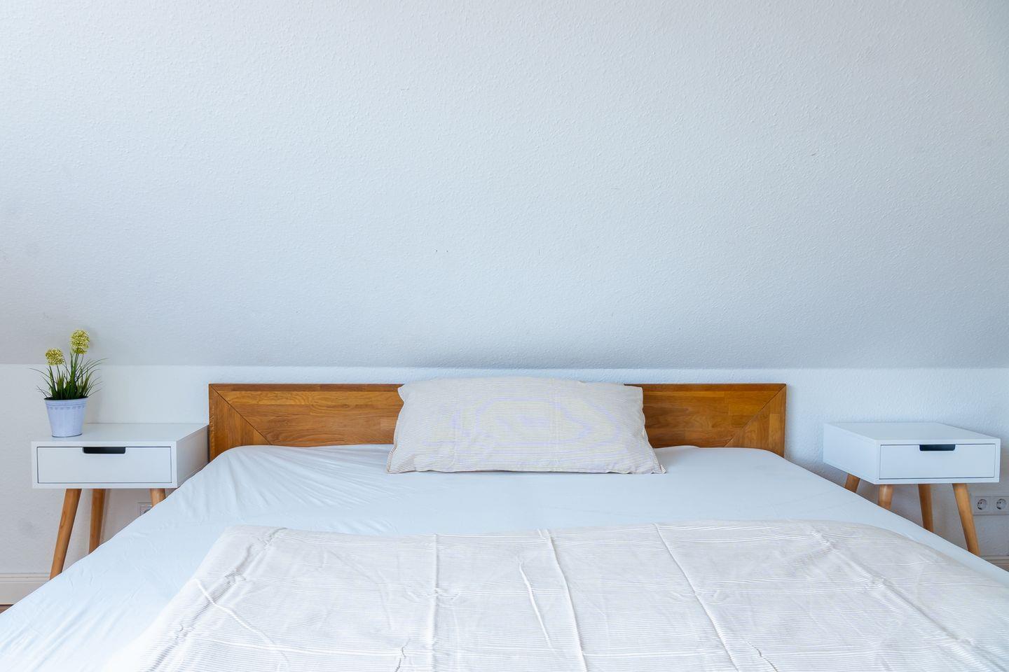 Das Haus verfügt über vier Schlafzimmer: drei im Obergeschoss und eines im Erdgeschoss, so dass dort auch mobil eingeschränkte Personen eine Schlafstatt finden. Jedes der Schlafzimmer ist liebevoll eingerichtet und die Betten sind mit hochwertigen Hotelwendematratzen (eine weichere und eine härtere Seite) ausgestattet, so dass jeder nach seinem Belieben die für sich angenehmere Seite auswählen kann. An den Fenstern der Schlafzimmer sind Verdunklungsplissees angebracht, so dass auch während der langen Sommertage ein entspanntes Ausschlafen gewährleistet ist. Zwei der Schlafzimmer verfügen zudem über einen Zugang zu Ihrem privaten Balkon, von dem aus Sie den herrlichen Blick ins Grüne haben und so manche Sonnenstunden genießen können.