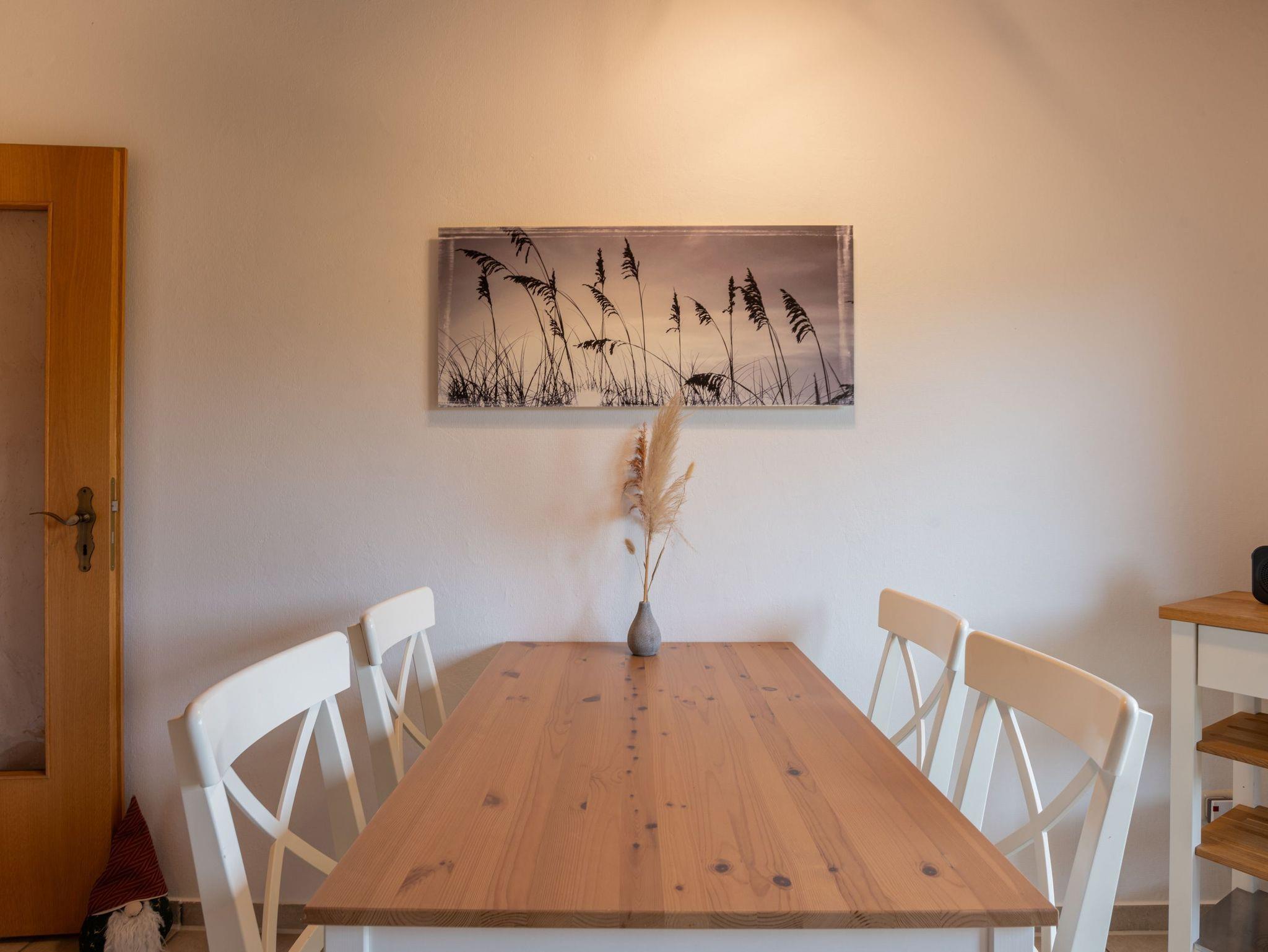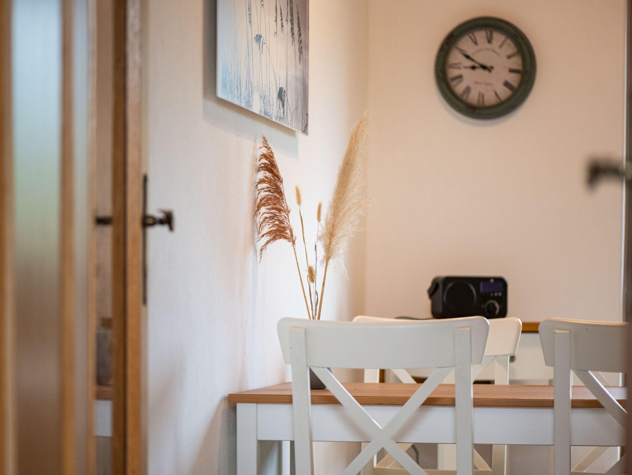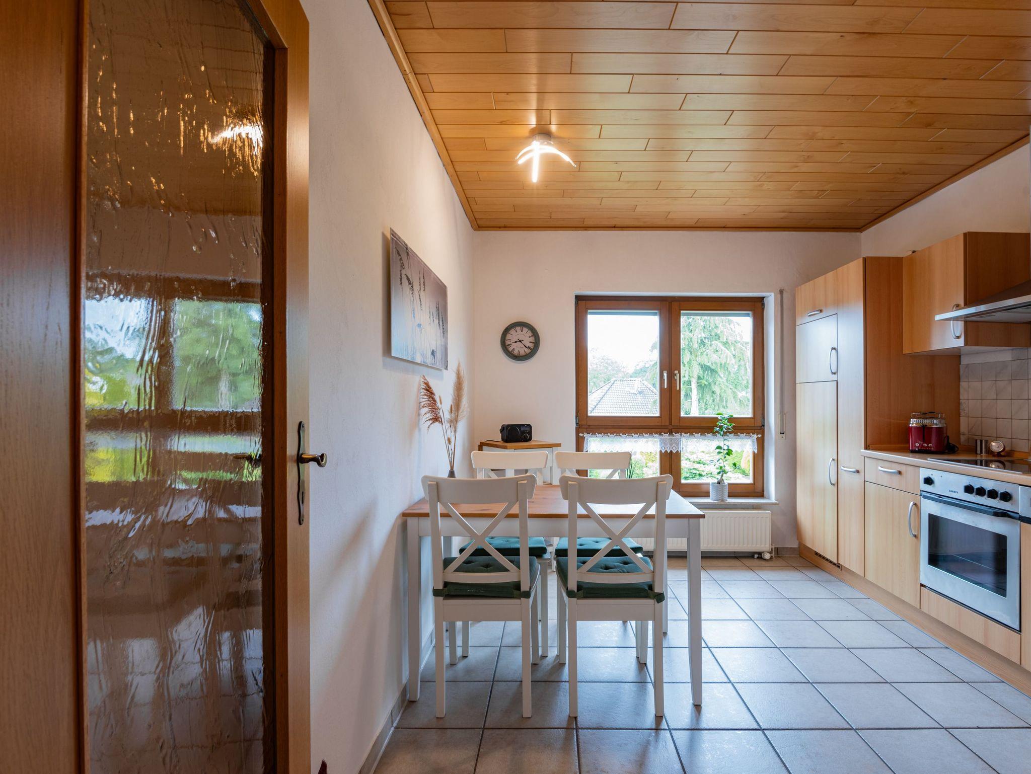 Die voll ausgestattete Küche lädt zum gemütlichen Kochen und Verweilen ein. Vier Personen finden am Küchentisch Platz. Einen Kinderstuhl stellen wir auf Nachfrage gerne dazu.