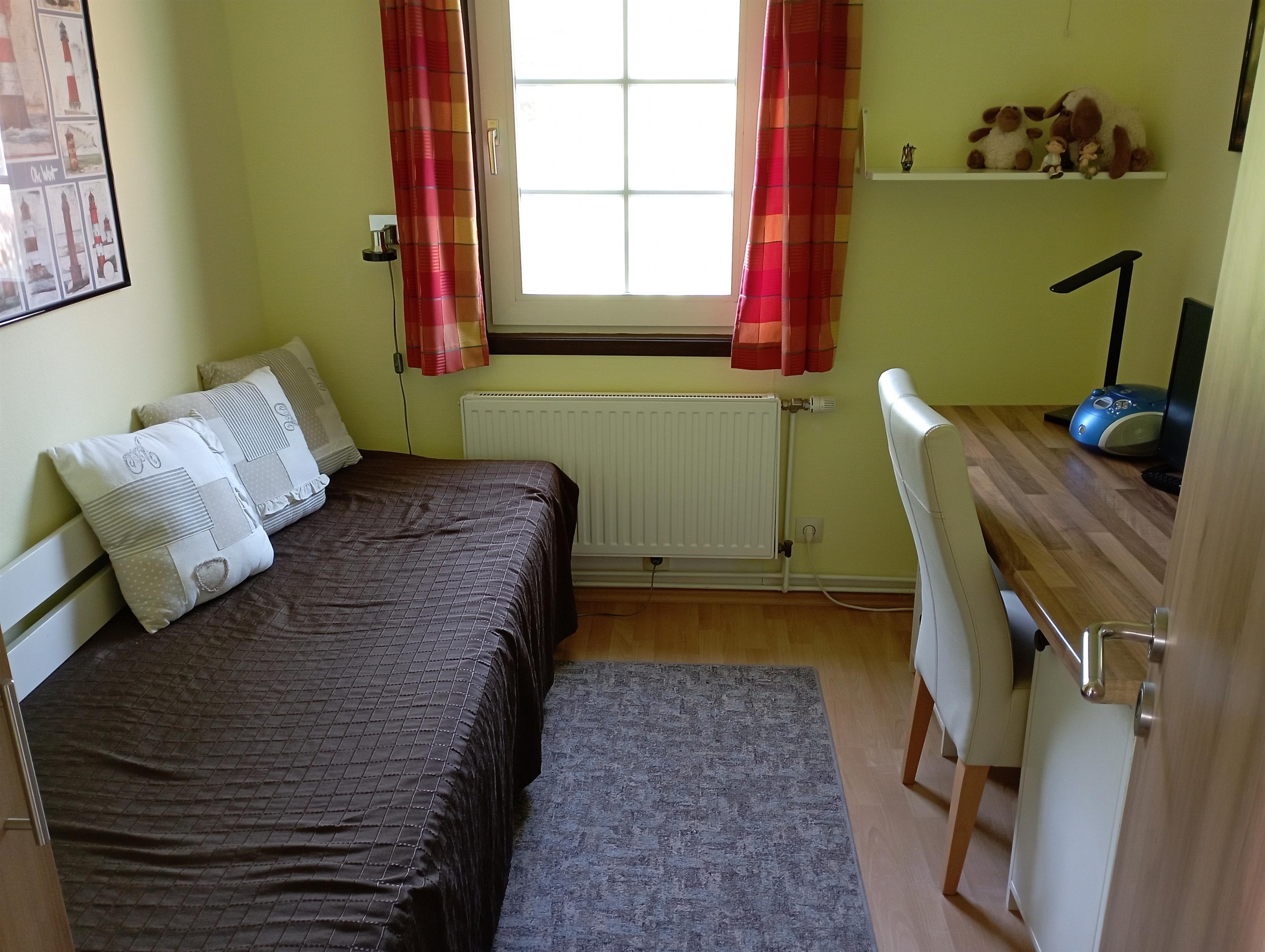 Das Haus verfügt über ein Schlafzimmer mit einem komfortablen Boxspringbett sowie zwei weitere Zimmer mit Einzelbetten. In einem kleinen Raum neben dem Schlafzimmer stehen ein zusätzliches Kinderbett und eine praktische Wickelkommode bereit. Selbstverständlich sind Bettwäsche und Handtücher bereits im Mietpreis inbegriffen.
