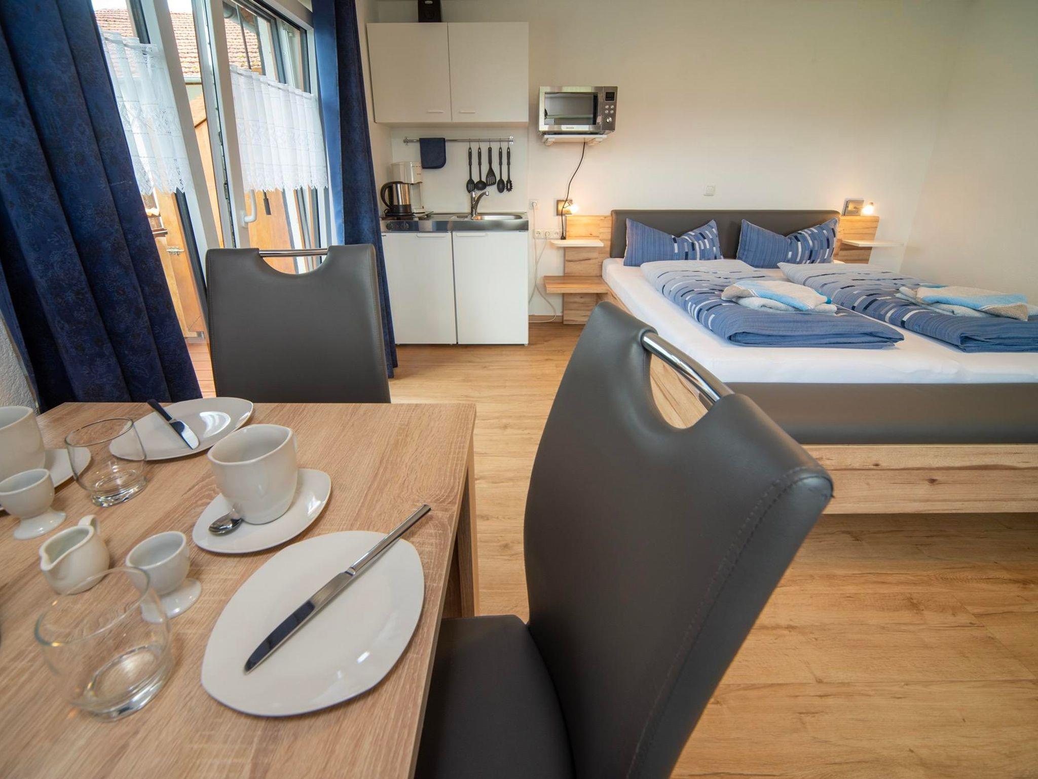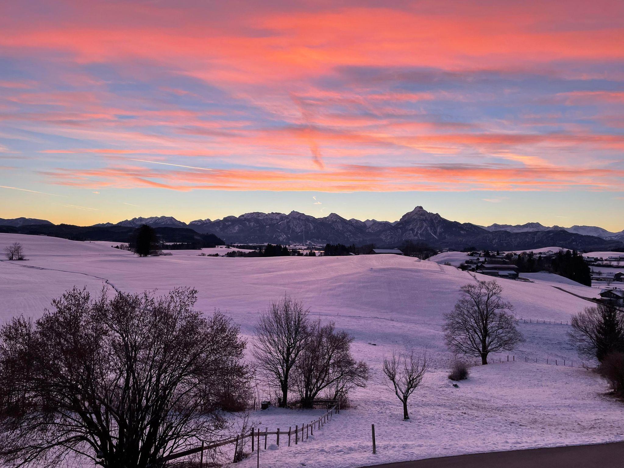 Unser neu renoviertes Appartement (2017) ist ausgestattet mit einem Parkettboden und einer Miniküche mit: einem Kühlschrank mit Gefrierfach, 2 Ceranfelplatten und einer Spüle. Geschirr, Besteck und Töpfe etc. sowie Abtrocktücher und Spülmittel sind ebenfalls vorhanden. Im Doppelbett können Sie bequem auf dem Flachbildfernseher ihre Lieblingsfilme o. ä. schauen. Essen können Sie drinnen in der Sitzecke oder bei schönem Wetter auf dem möbilierten Südbalkon mit Blick auf Schloss Neuschwanstein und das schöne Alpenpanorama. In allen Fenstern und an der Balkontüre befinden sich Fliegengitter. Im Bad befindet sich eine ebenerdige Dusche, 1 WC und 1 Waschbecken. Handdücher und Seife sind ebenfalls im Preis inbegriffen. WLAN ist vorhanden und für Sie kostenlos.