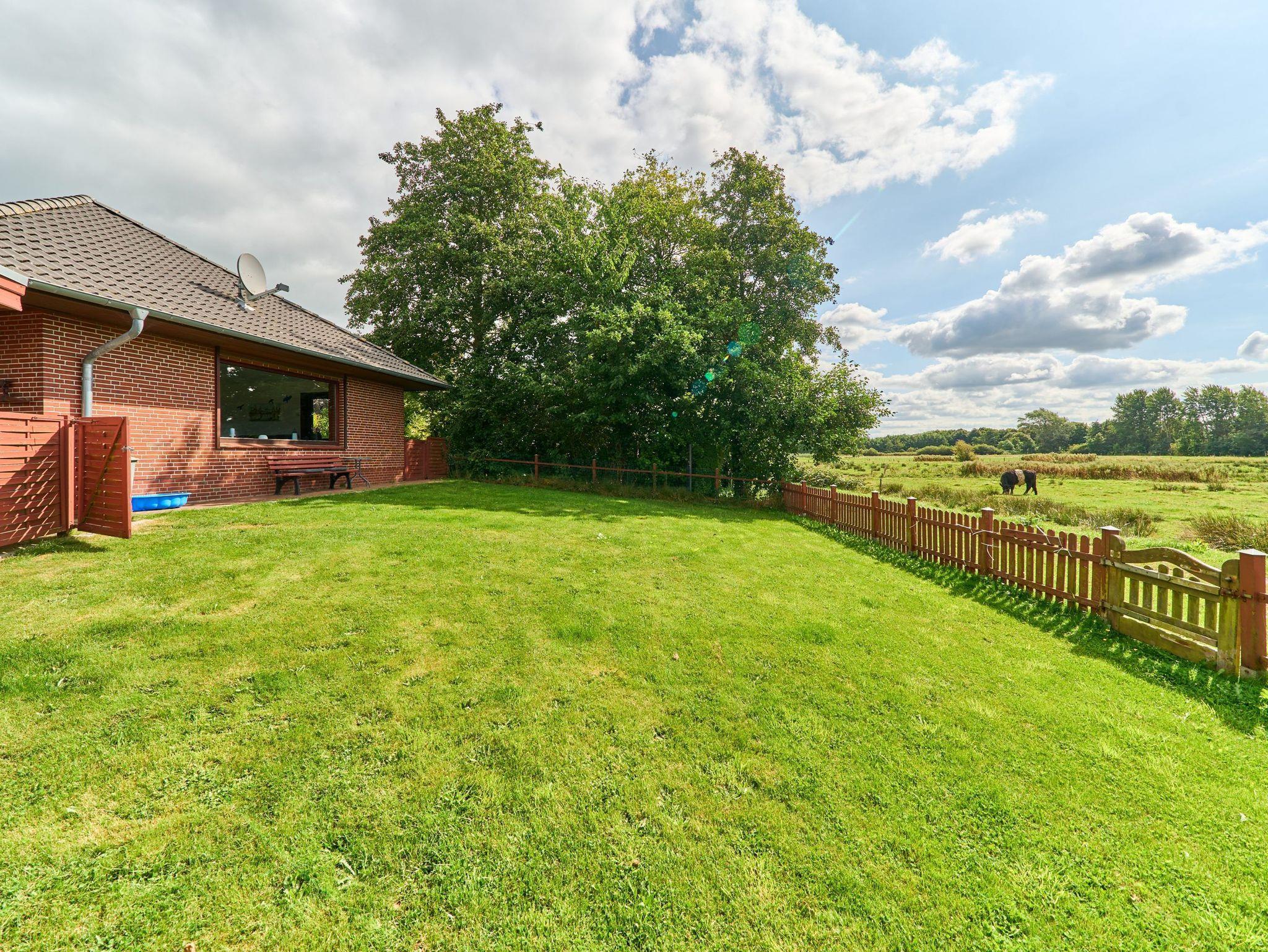 Das großzügige Ferienhaus Lund36 liegt in einer ruhigen Naturrandlage mit Blick über die Wiesen im Ortsteil Lund der zur Kreisstadt Husum gehört.