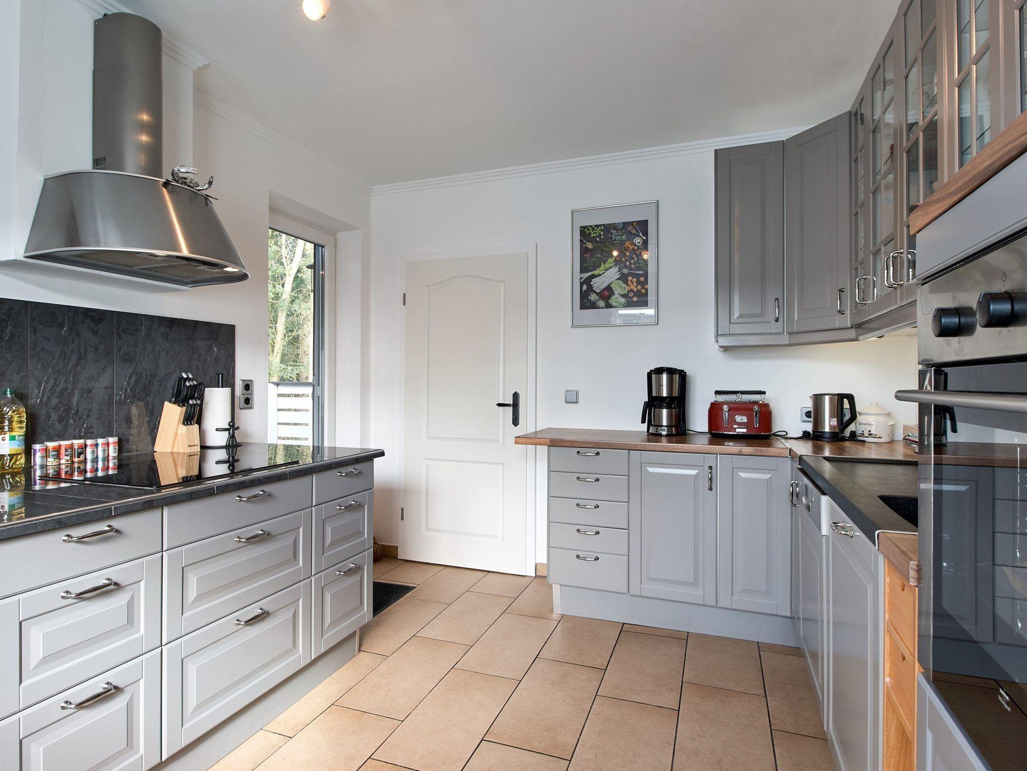 Die Ferienwohnung verfügt im Erdgeschoss über Eingangsdiele, Esszimmer, voll ausgestattete Küche,