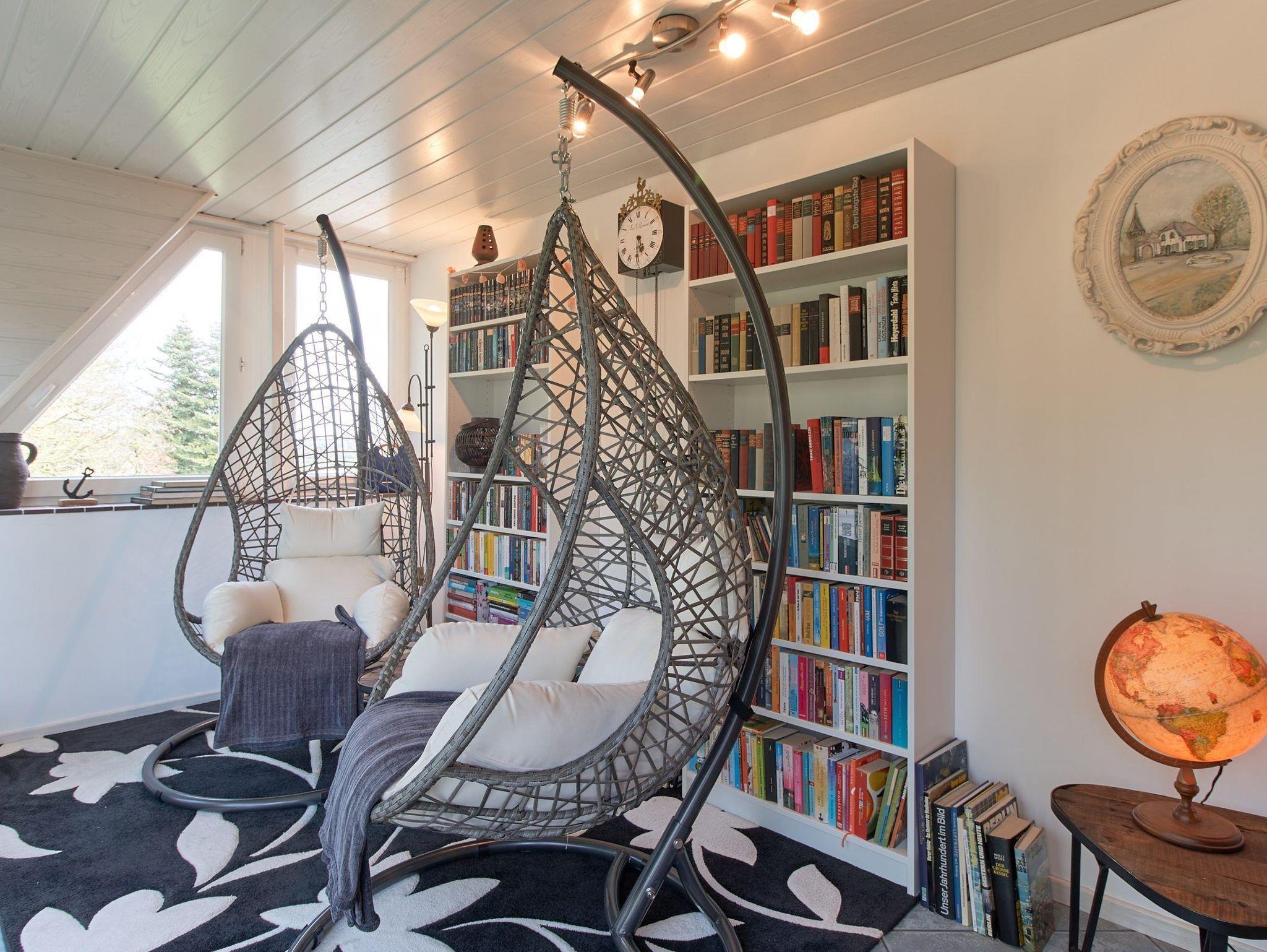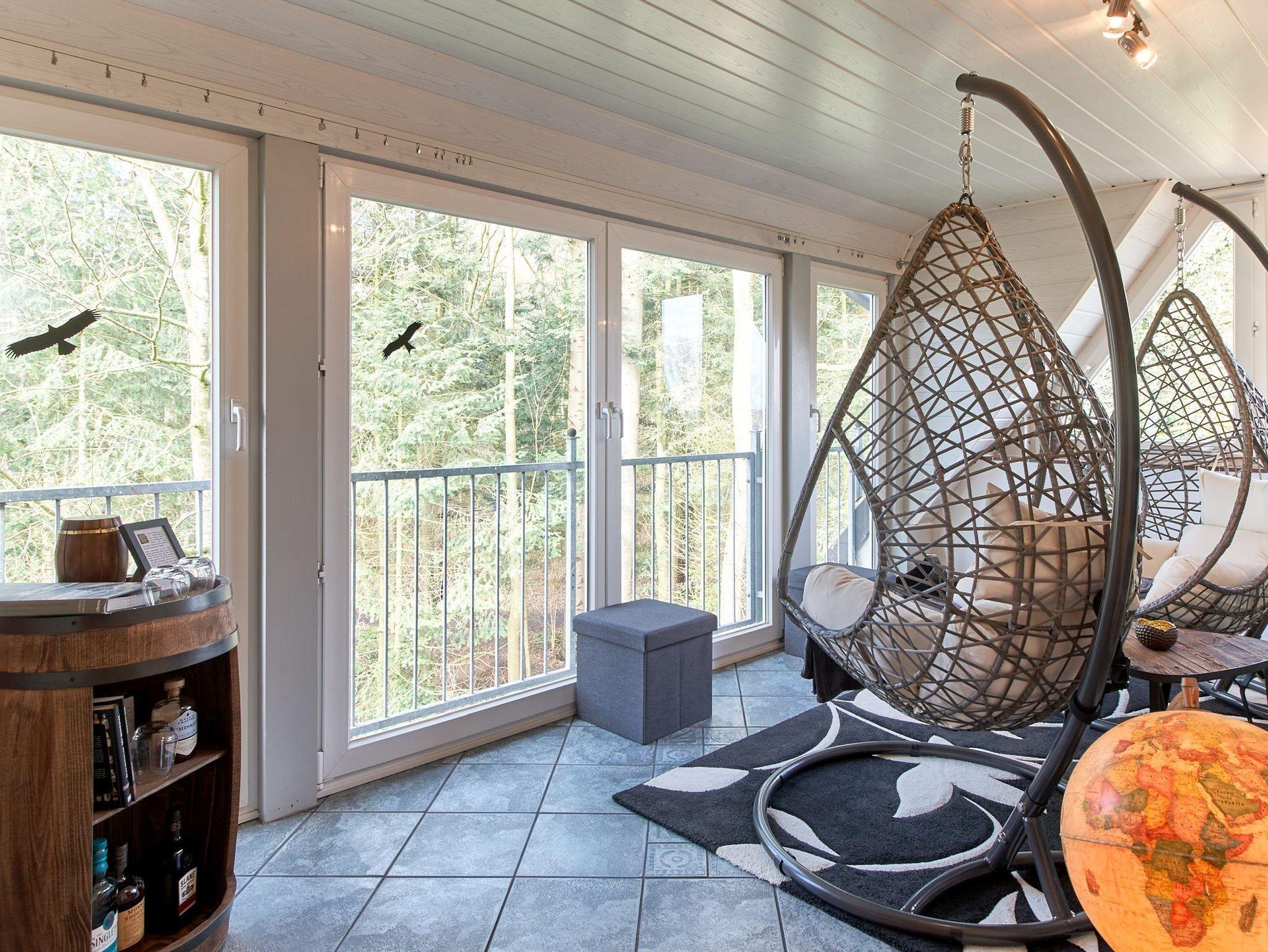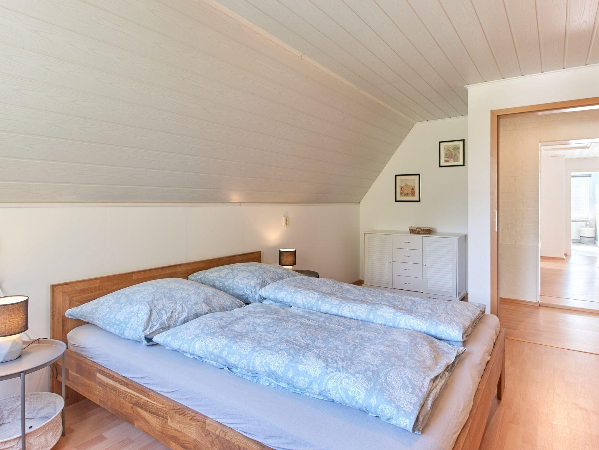 Im Obergeschoss befinden sich 2 Schlafzimmer mit Doppelbetten (1,80x2,00m [&] 1,60x2,00m), der begehbare Kleiderschrank, dass Vollbad mit Badewanne/Dusche sowie das Lesezimmer mit traumhaftem Ausblick durch Panoramafenster in den Wald.