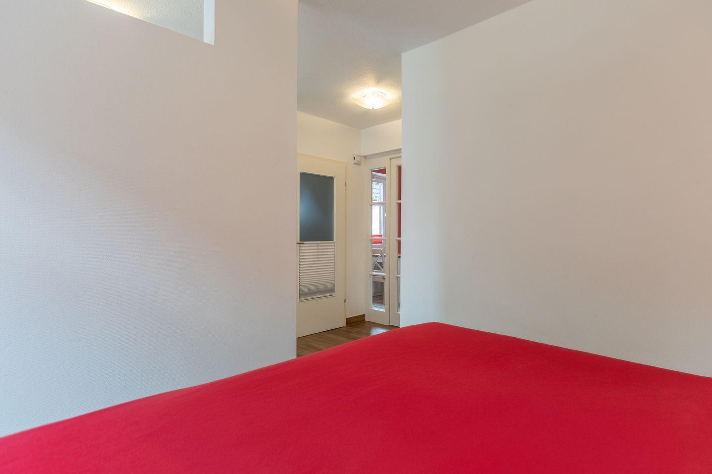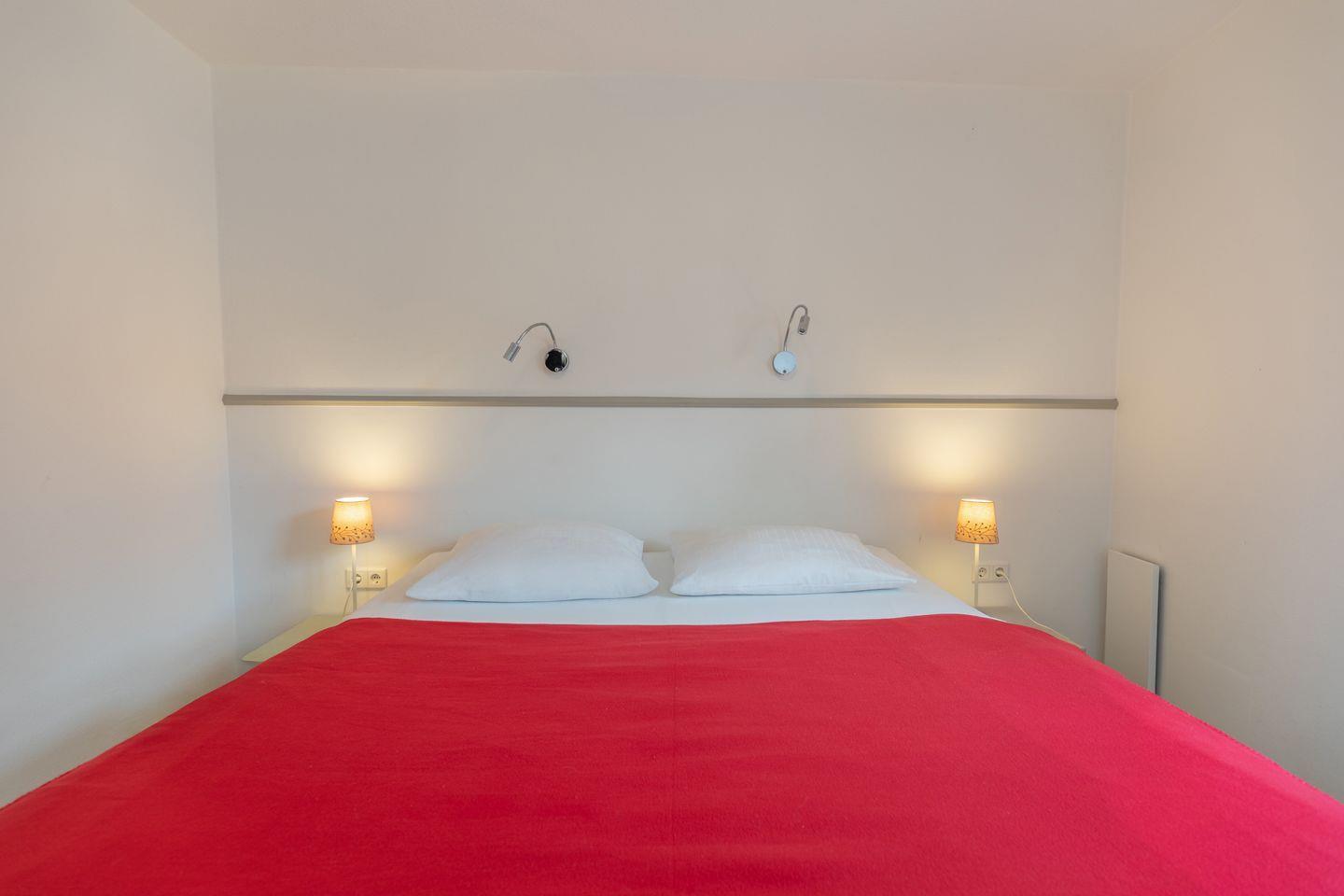 Die Studiowohnung ist hochwertig eingerichtet: ein Schlafzimmer mit einem Boxspringbett (180 × 200) und eine komfortable und gut ausgestattete Einbauküche mit Ceranfeld, Backofen, Geschirrspülmaschine, Kaffeemaschine (Filtergröße 4). Der Wohnbereich verfügt über zwei Sessel und einen Flachbild-TV. Das moderne Badezimmer ist mit einer ebenerdigen Dusche, WC und Waschbecken eingerichtet.