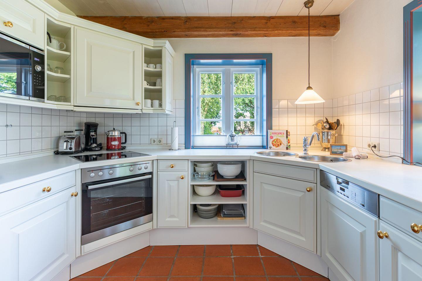 Im EG finden Sie die komfortabel eingerichtete Küche mit Backofen, Cerankochfeld, Dunstabzugshaube, Geschirrspülmaschine, Mikrowelle und div. Kleingeräten wie Kaffeemaschine (Filter, Senseo, Nespresso), Wasserkocher, Toaster etc.
