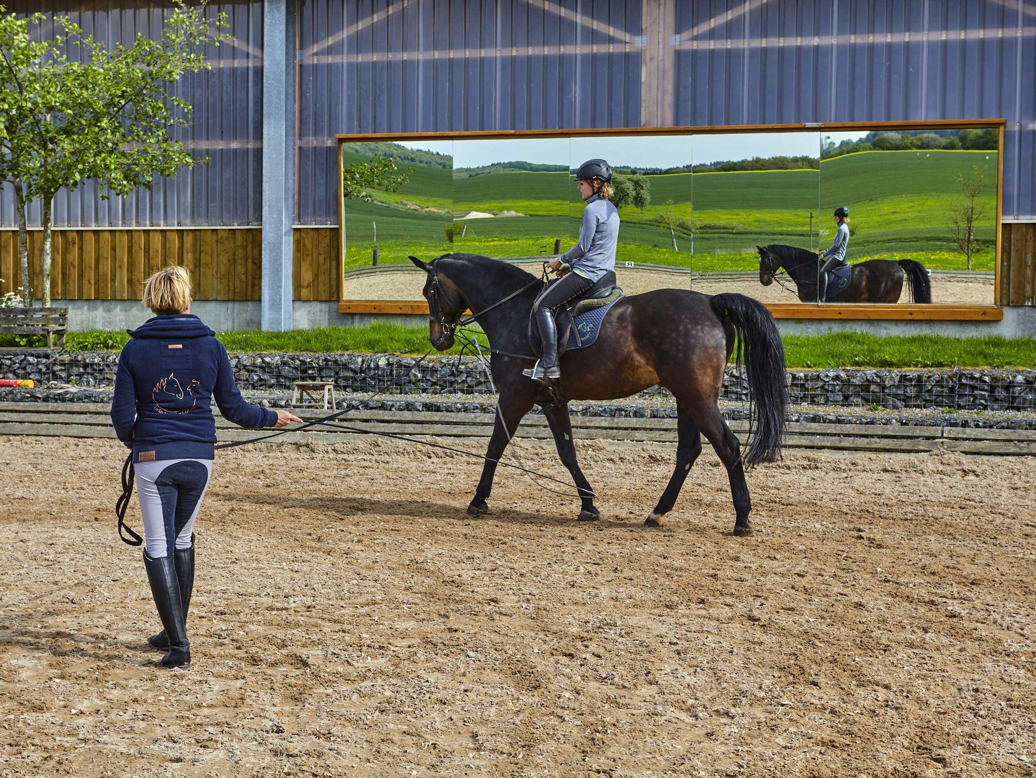 Highlight: Große Glasfläche zum Innenhof, Blick zu den Pferden