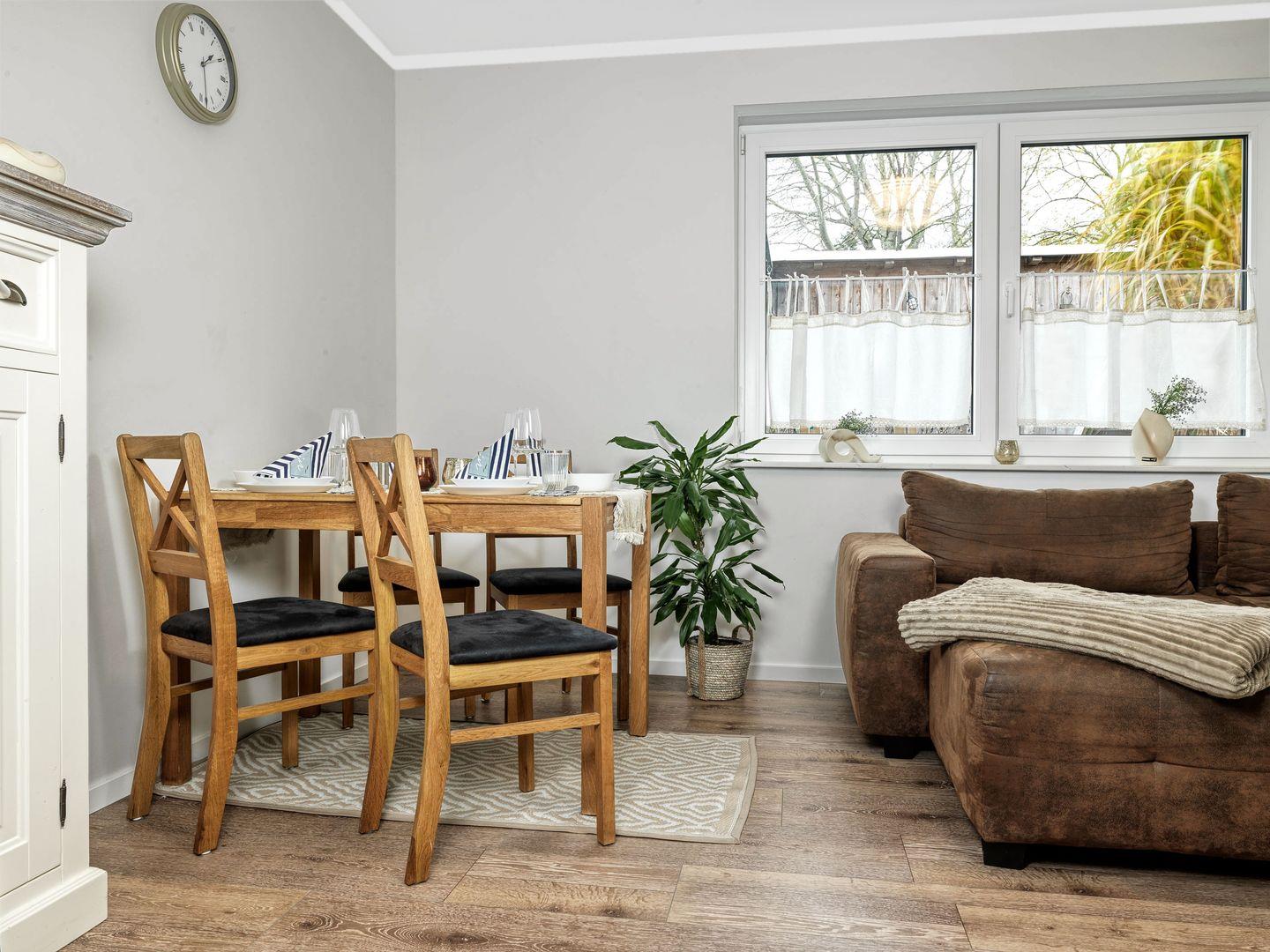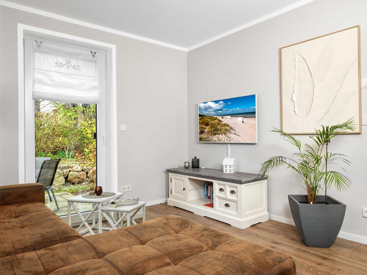 Diese gemütliche 2-Raum-Wohnung bietet Ihnen allen Komfort, den Sie im Urlaub wünschen: großzügiges Bad mit Dusche und WC, Wohn-Zimmer mit Schlafcouch und Esstisch. Die Küche befindet sich in einem separatem Raum (Herd mit Cerankochfeld, Kaffeemaschine, Toaster, Wasserkocher etc.).
