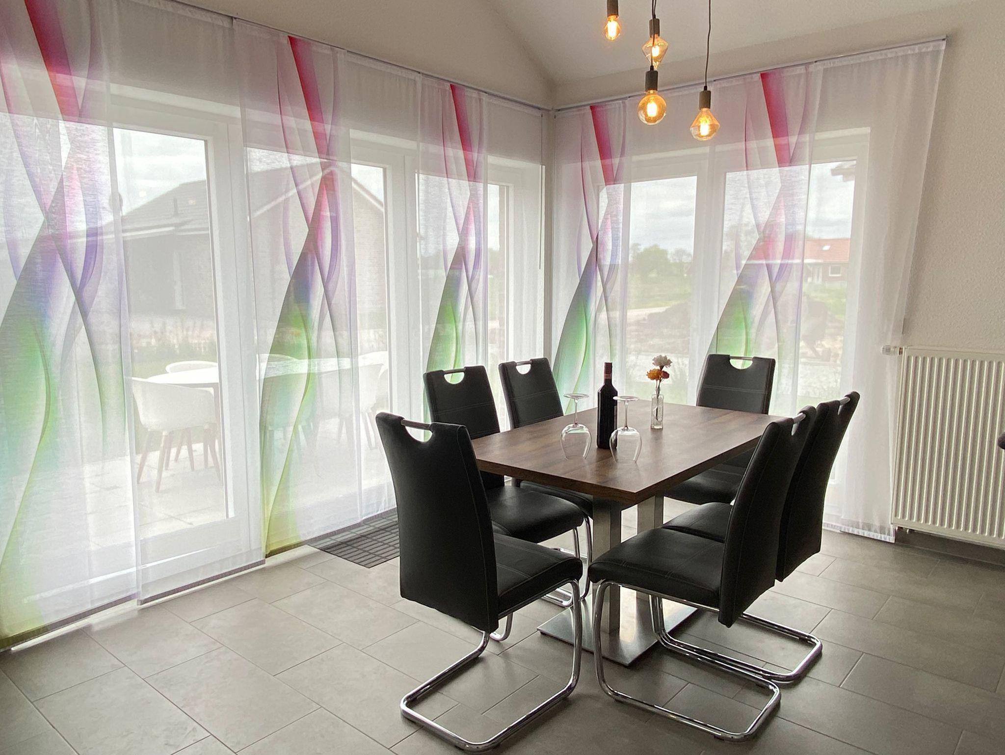 Unser Haus Fasanen Nest ist ein 3-Sterne-Neubau. Auf ca. 80 qm Wohnfläche wartet eine stilvolle Ausstattung auf Sie. Alle Räume verfügen über Fußbodenheizung. Im Badezimmer finden Sie eine extra große Walk-In-Regendusche und eine Waschmaschine mit Trocknerfunktion . Auch ein Gäste-WC ist vorhanden. Die Möblierung ist hochwertig und die Grundausstattung im kompletten Objekt lässt keine Wünsche offen. Es gibt einen Schlafraum mit Doppelbett und ein weiteres Schlafzimmer mit Hochbett mit zwei verschiedenen Matratzengrößen und eine Wickelkommode. Hier geht es rauf zur Spielempore. (Die steile Treppe ist nicht geeignet für Kleinkinder), Eine weitere Person kann sich auf dem Schlafsofa betten.