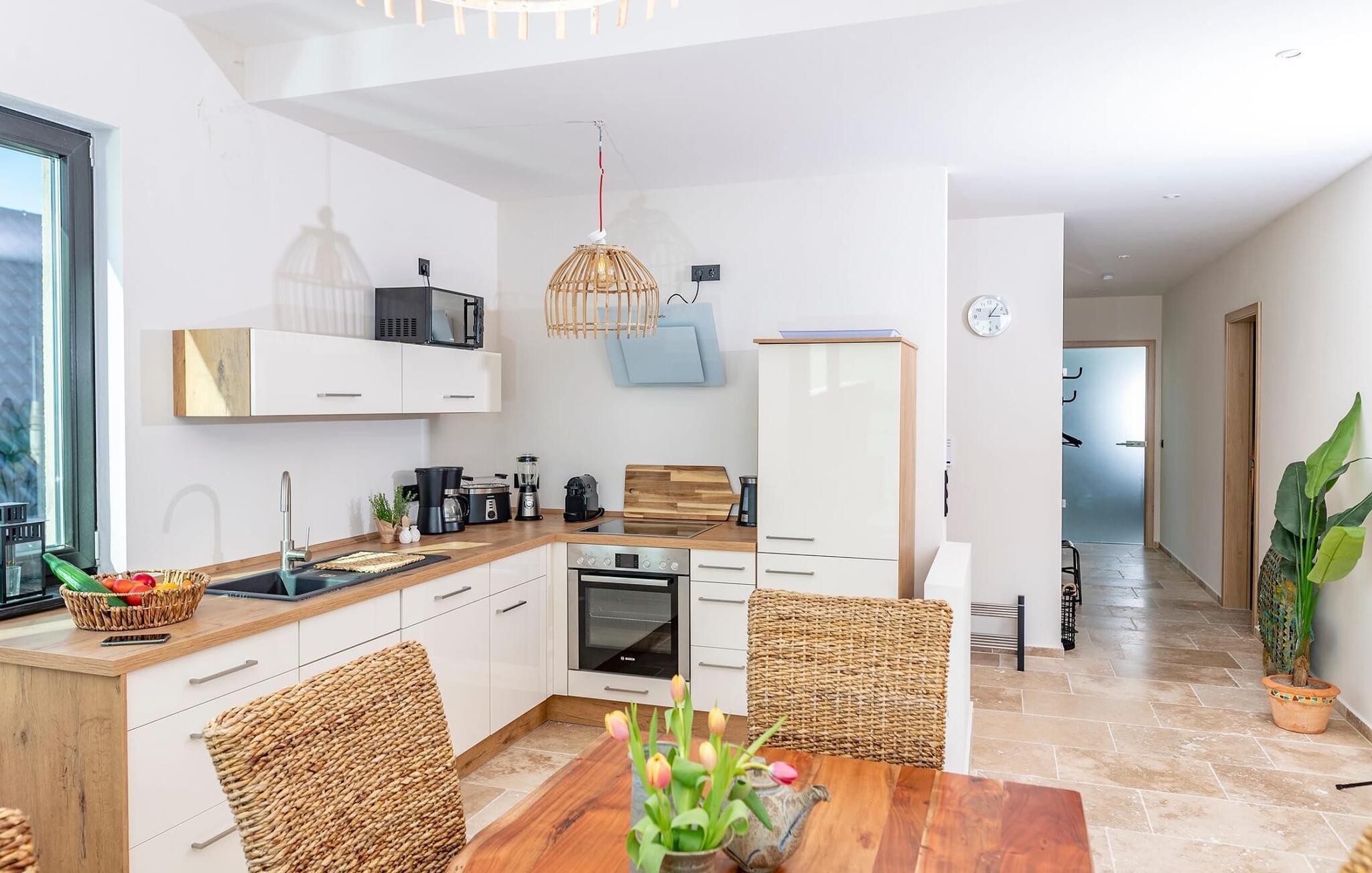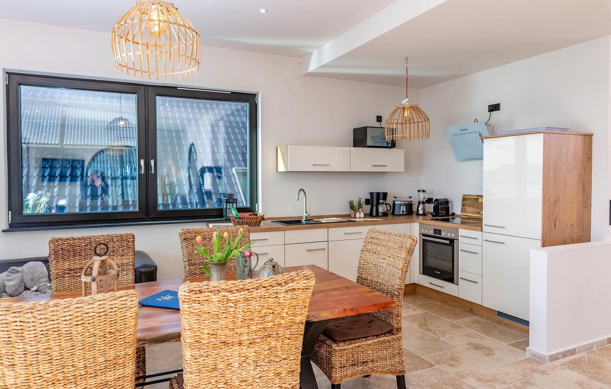 Köket med öppen planlösning och matplats lämnar inget att önska, eftersom det är fullt utrustat för att förbereda läckra semestermåltider.