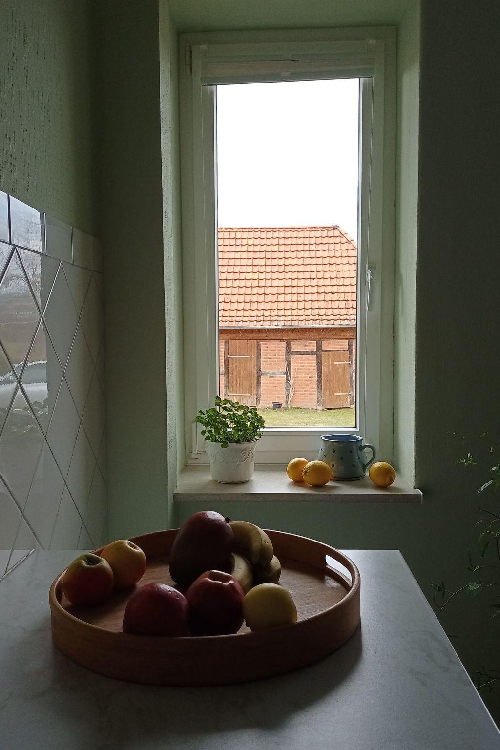 The 59m² 3-room ground floor flat with separate entrance offers space for two to four people. A cheerful kitchen is fully equipped for your physical well-being. There is a double bedroom and a room with two single beds. The living room has a cosy dining area with a view of the garden and the meadow beyond. The holiday flat also has a spacious shower room with WC.